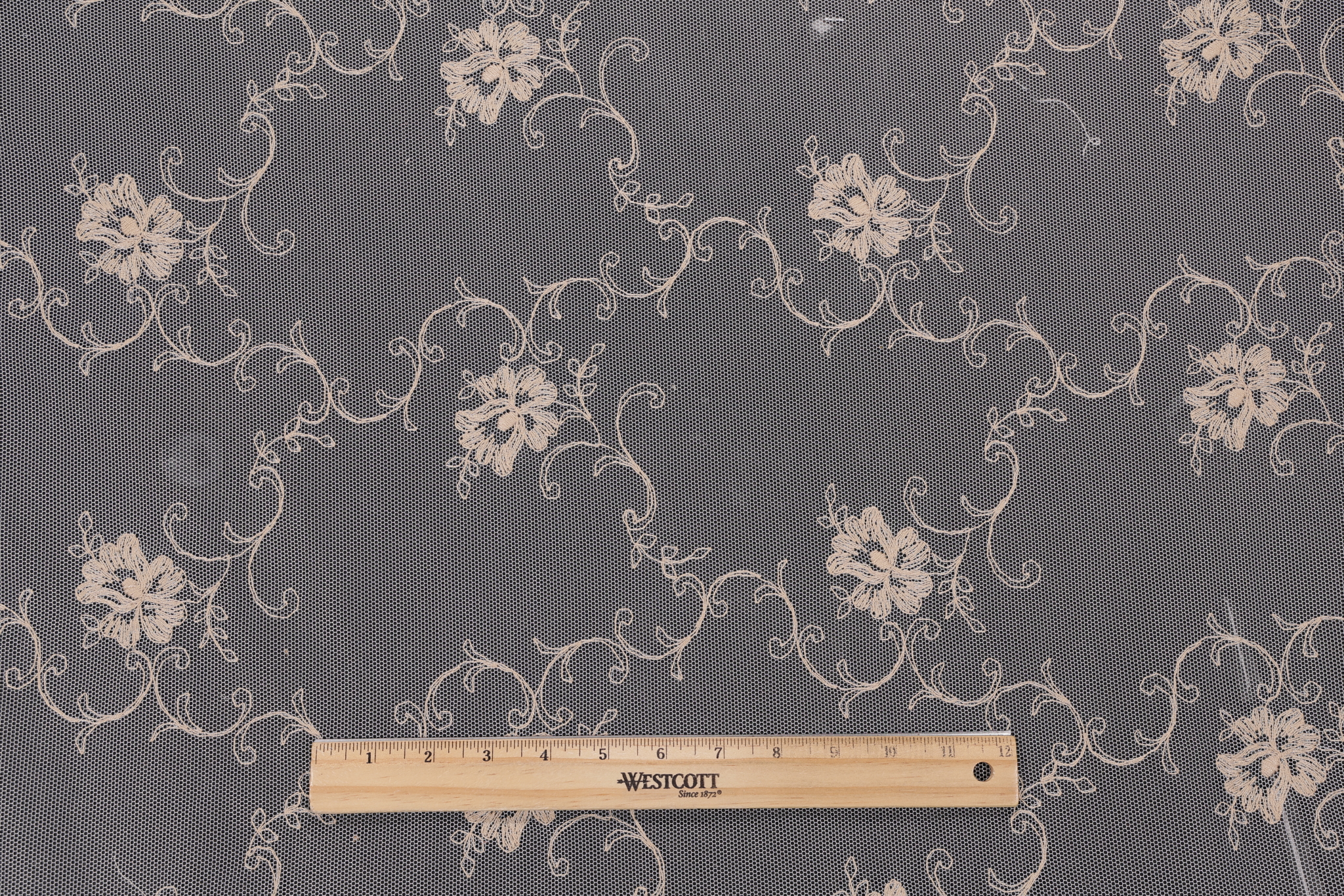 3 Yards Scalamandre Fleurville 120 inch Sheer Embroidered Drapery Fabric in Beurre Beige Details