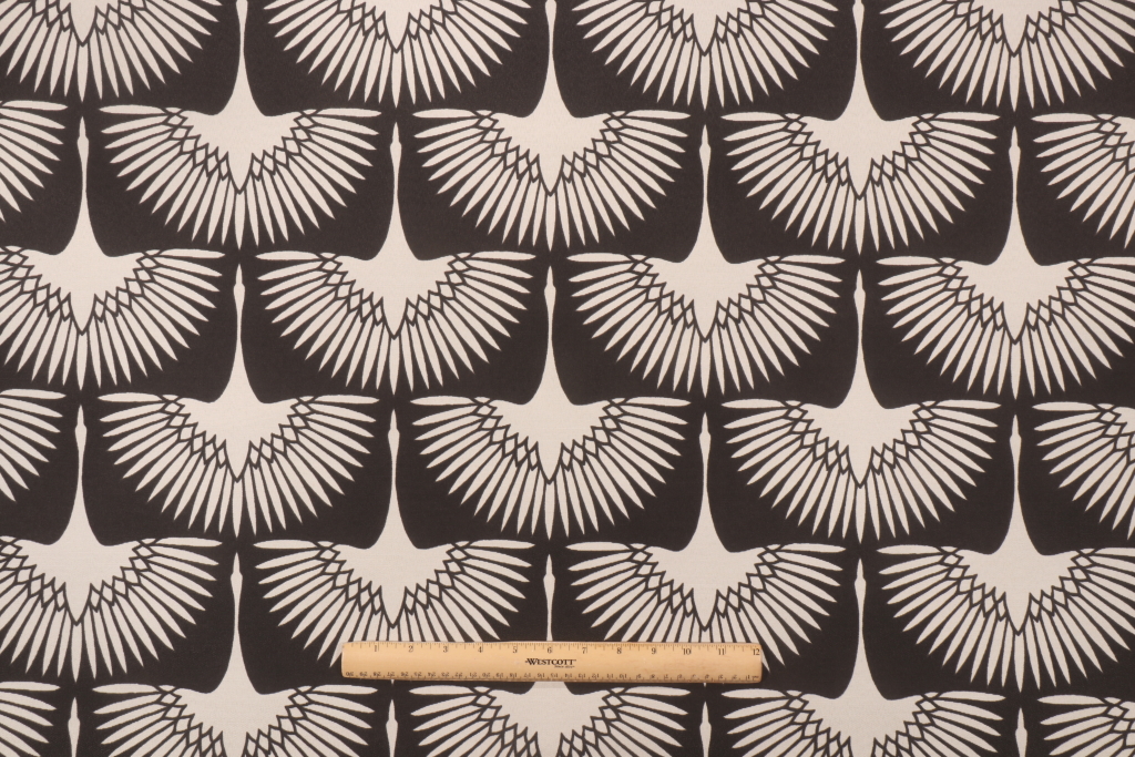 Genevieve Gorder Flock Printed Polyester Outdoor Fabric in Midnight. This printed indoor/outdoor fabric is perfect for any project where the fabric will be exposed to the weather. Uses include cushions, tablecloths, upholstery projects, decorative pillows and craft projects. This fabric has a slightly stiff feel but is easy to work with.
