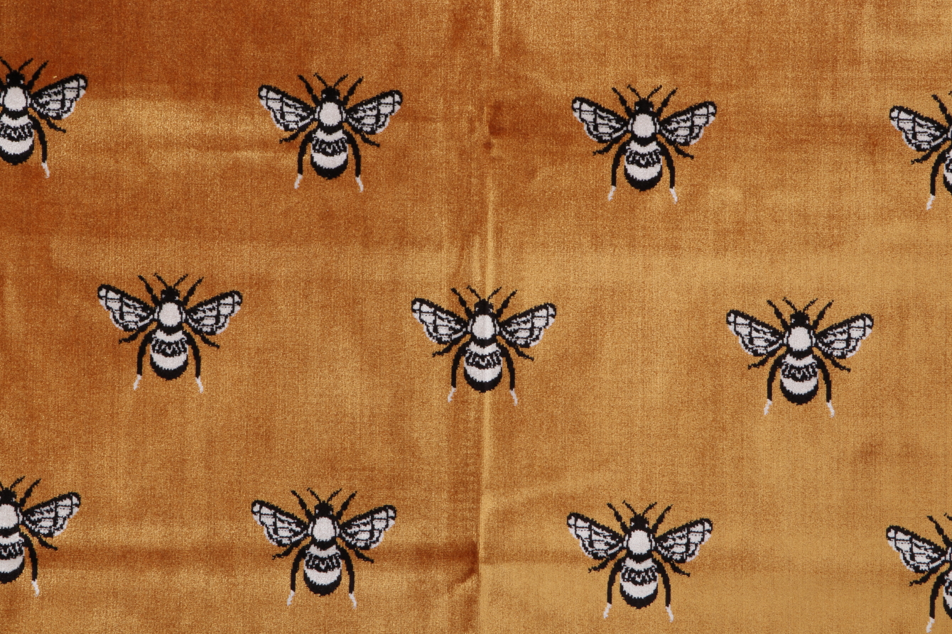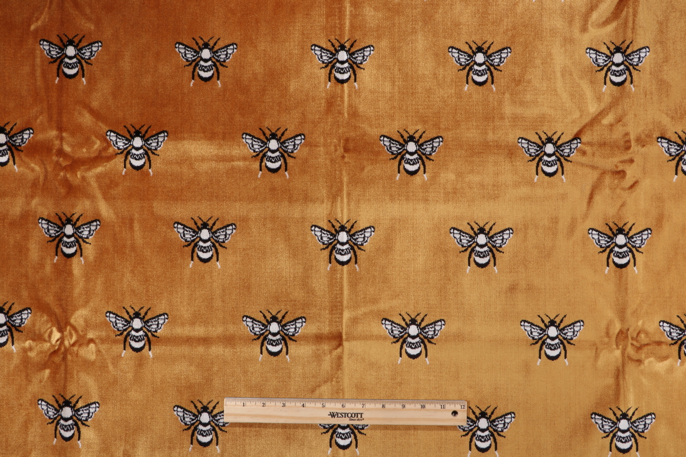 TFA Bee Kind Latex Backed Velvet Upholstery Fabric in Turmeric Details