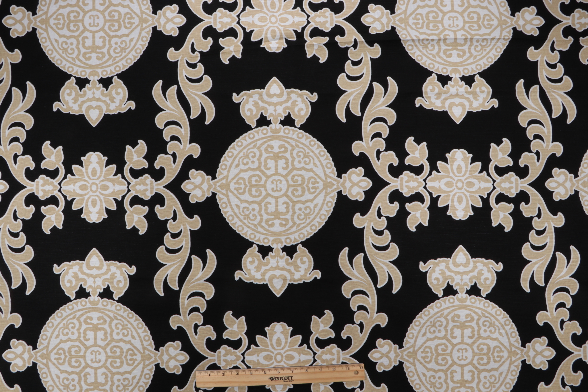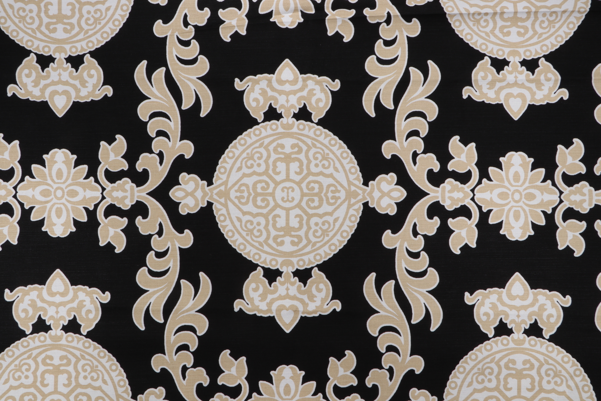 1.75 Yards Thibaut Hallie F936114 Printed Linen Blend Drapery Fabric in Black and Beige Details