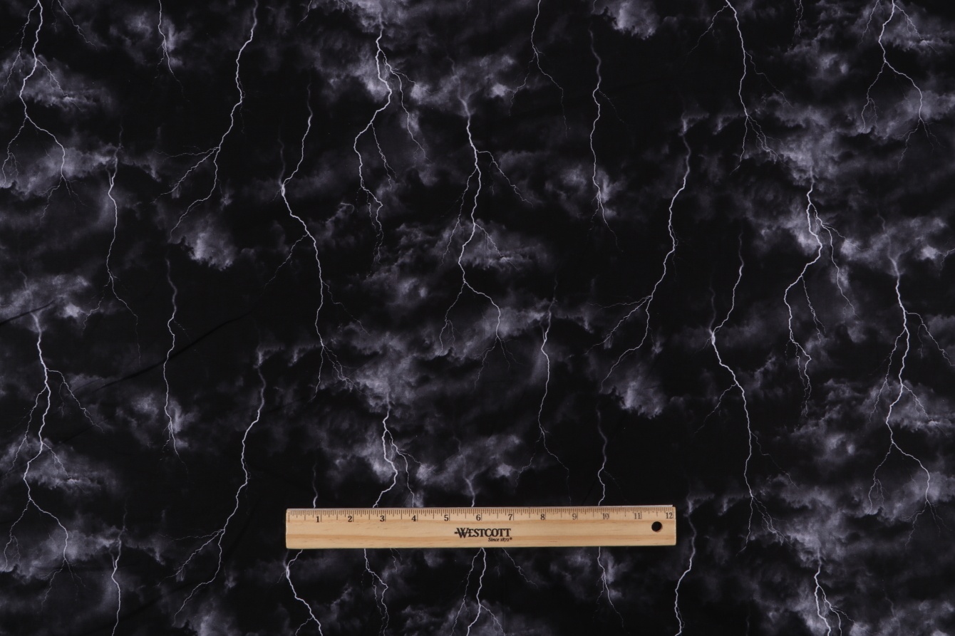 Fabrics Of SoHo Lightning Storm on Dark Sky Printed Cotton Craft Fabric in Night for Timeless Treasures is a remnant, which is sold as a whole piece.