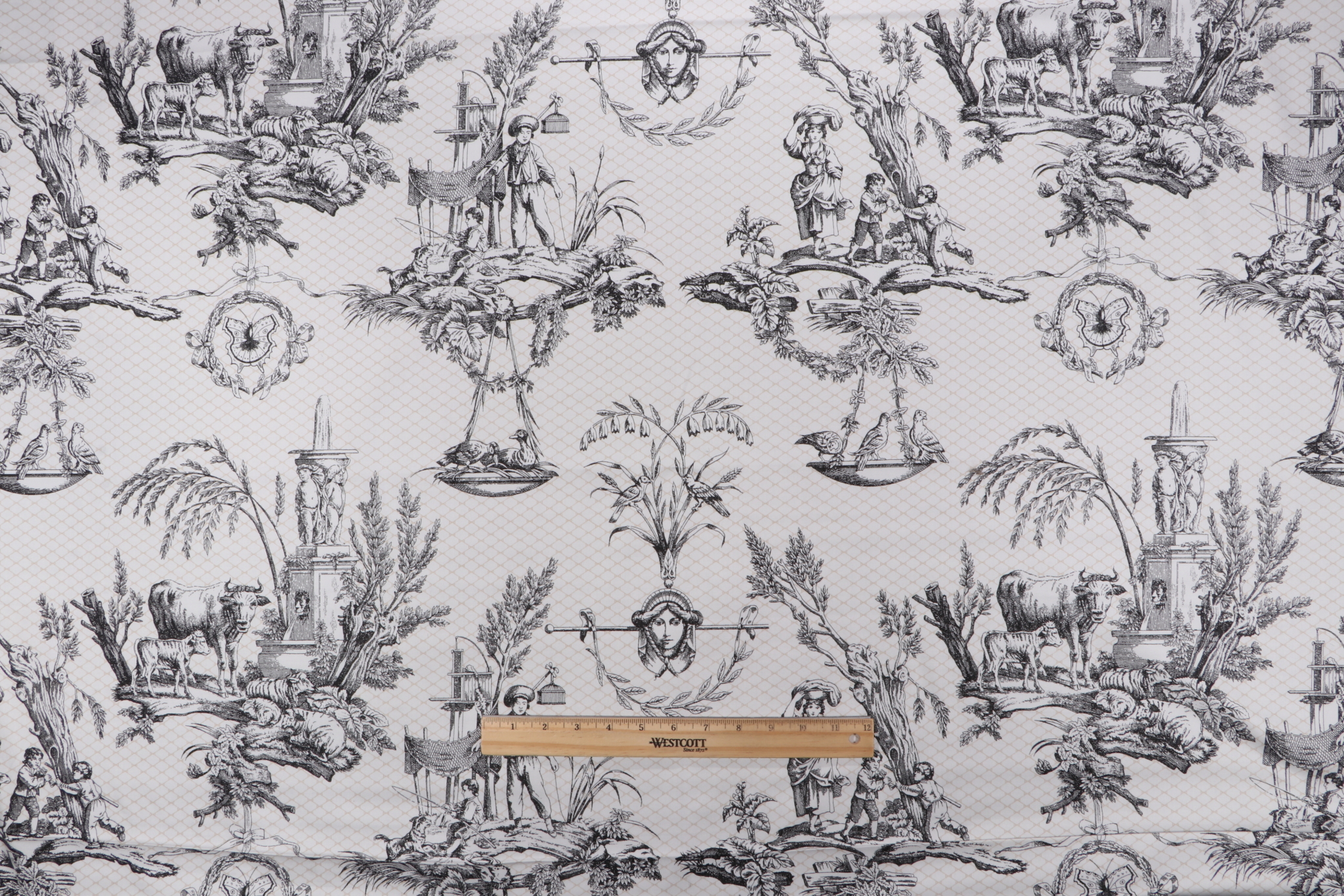 1 Yard Thibaut Toile De Provence F97343 Printed Cotton Drapery Fabric in Black on White Details