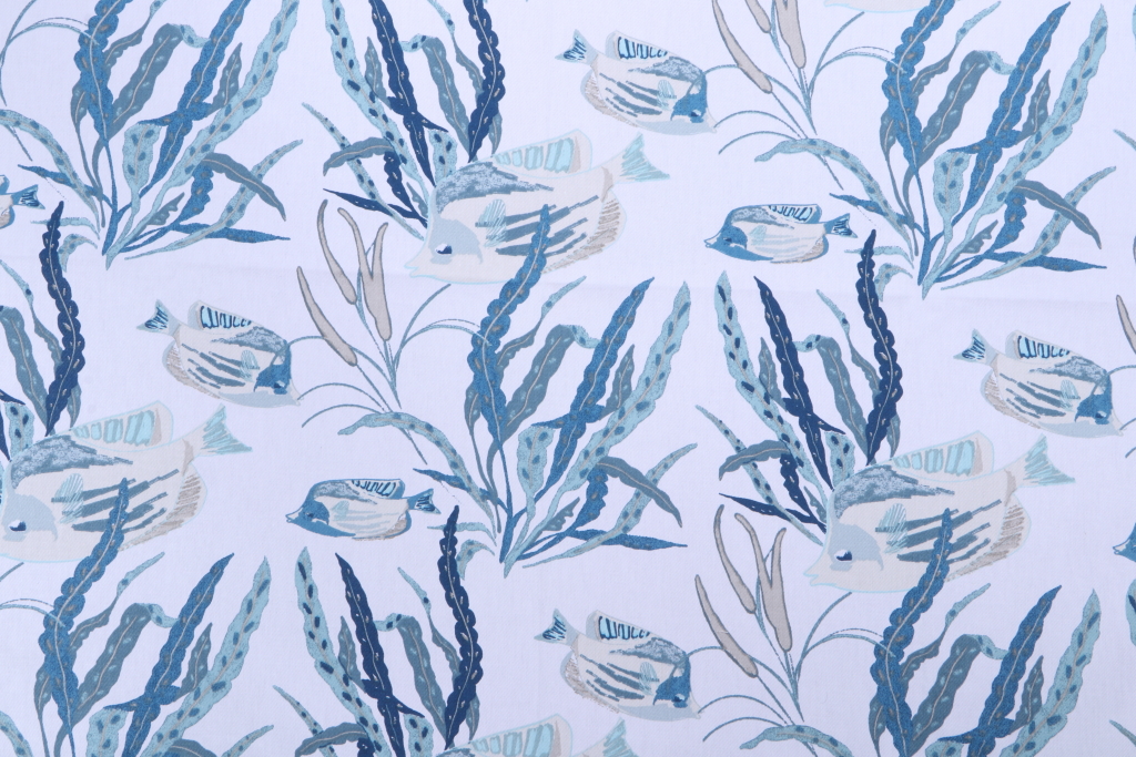 0.75 Yards Stof France Colisa Printed Cotton Twill Drapery Fabric in Bleu Details
