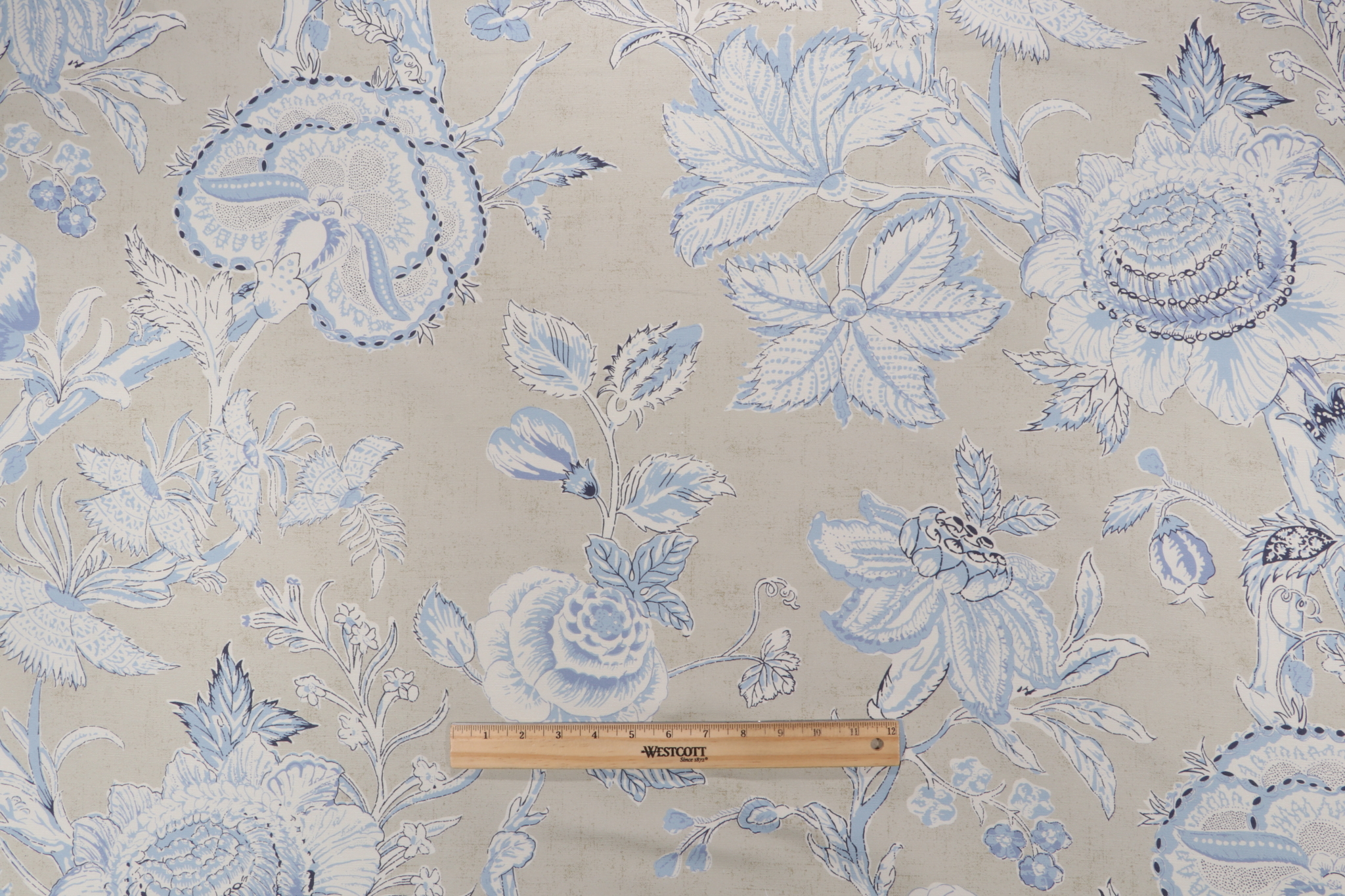 7.63 Yards Thibaut Rittenhouse F94146 Printed Cotton Blend Drapery Fabric in Blue and Tan Details