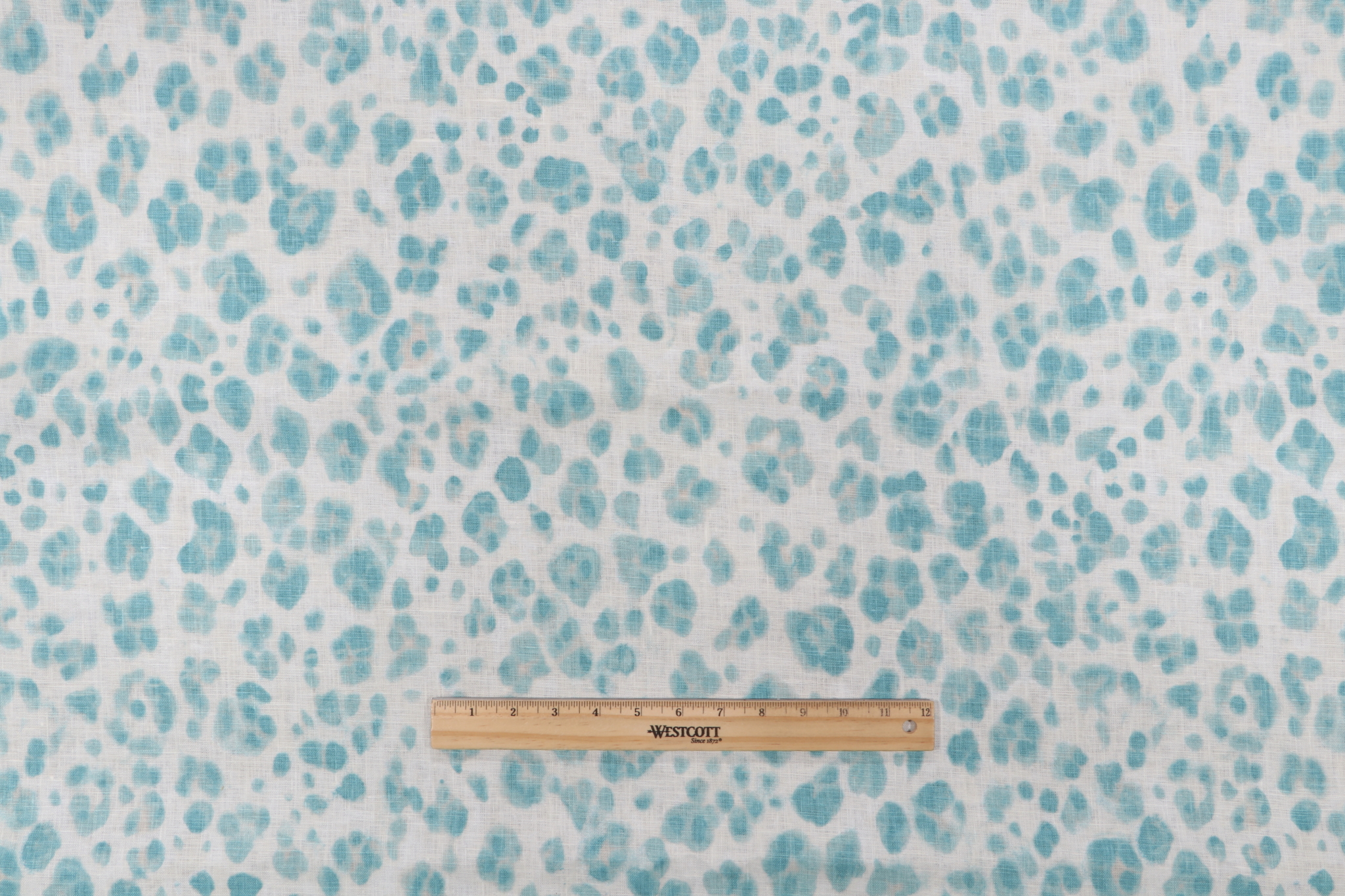 Thibaut Panthera F924379 Printed Linen Drapery Fabric in Aqua is a remnant, which is sold as a whole piece.