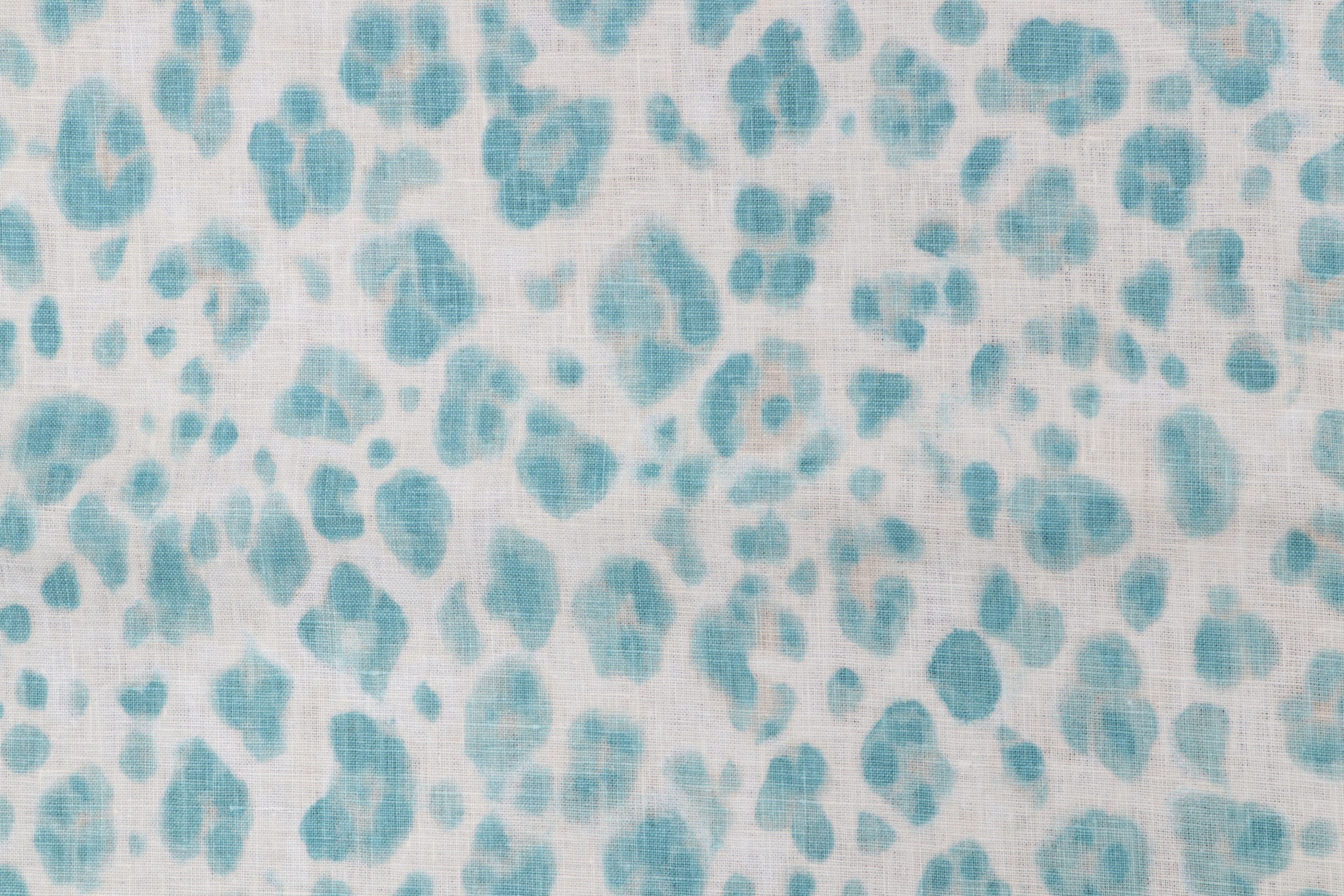 Thibaut Panthera F924379 Printed Linen Drapery Fabric in Aqua is a remnant. Fabric remnants refer to leftover pieces of fabric from production runs at manufacturing sites or pieces that remain from by the yard stock. The lengths of these remnants can vary from a few inches to several yards and are typically sold at a reduced price, since they represent remaining inventory.