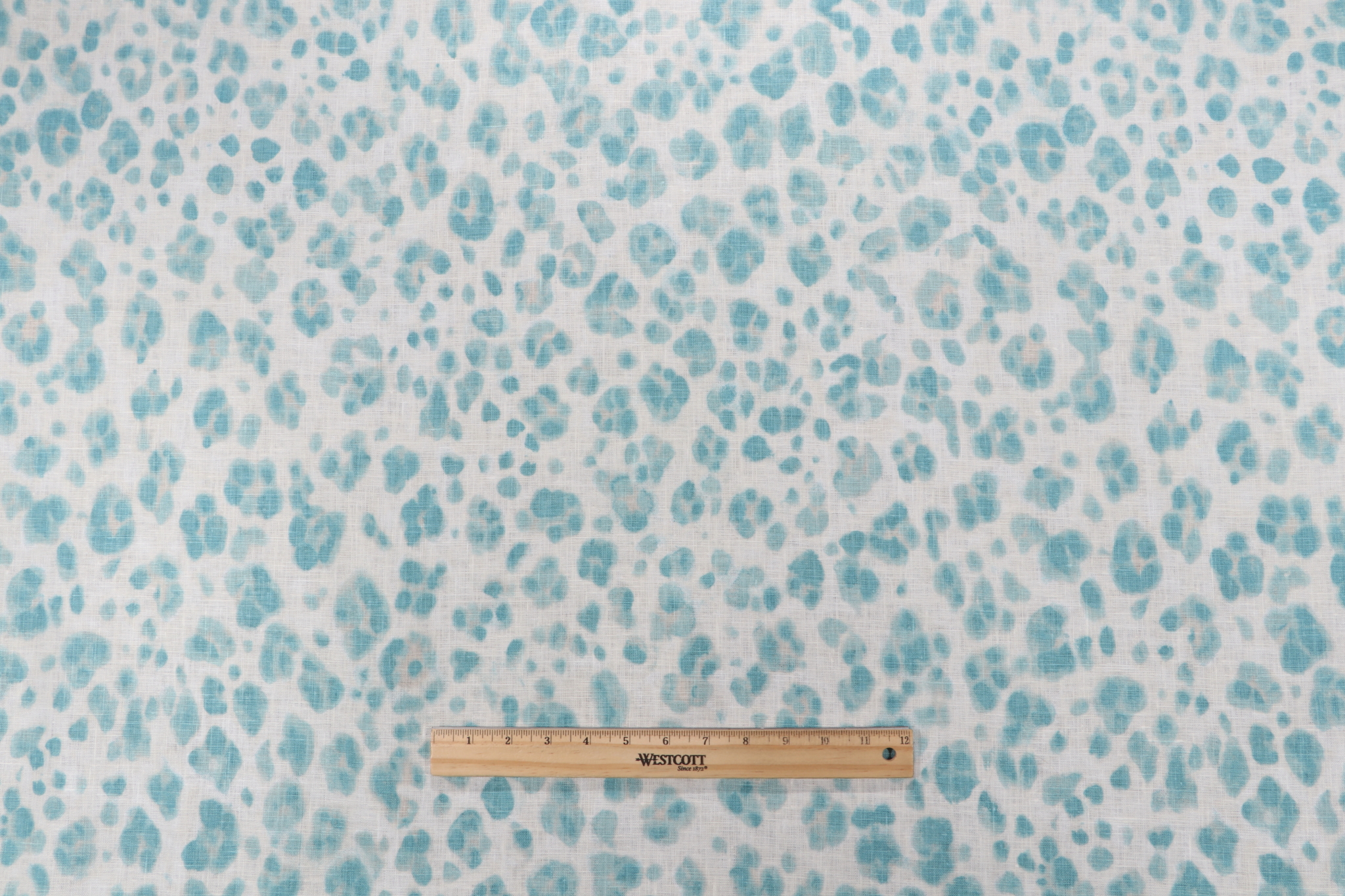 Thibaut Panthera F924379 Printed Linen Drapery Fabric in Aqua is a remnant, which is sold as a whole piece.
