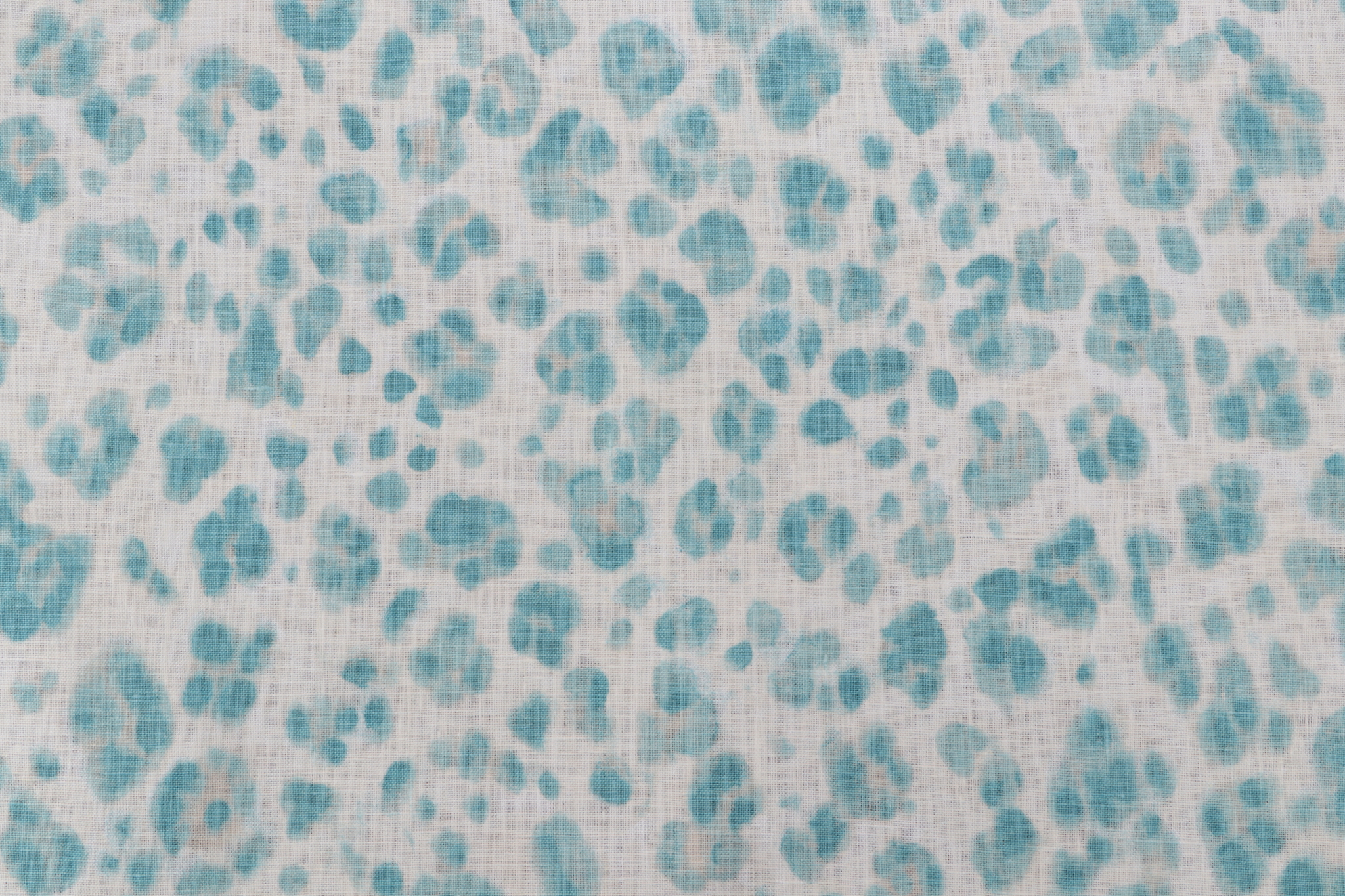 Thibaut Panthera F924379 Printed Linen Drapery Fabric in Aqua is a remnant. Fabric remnants refer to leftover pieces of fabric from production runs at manufacturing sites or pieces that remain from by the yard stock. The lengths of these remnants can vary from a few inches to several yards and are typically sold at a reduced price, since they represent remaining inventory.