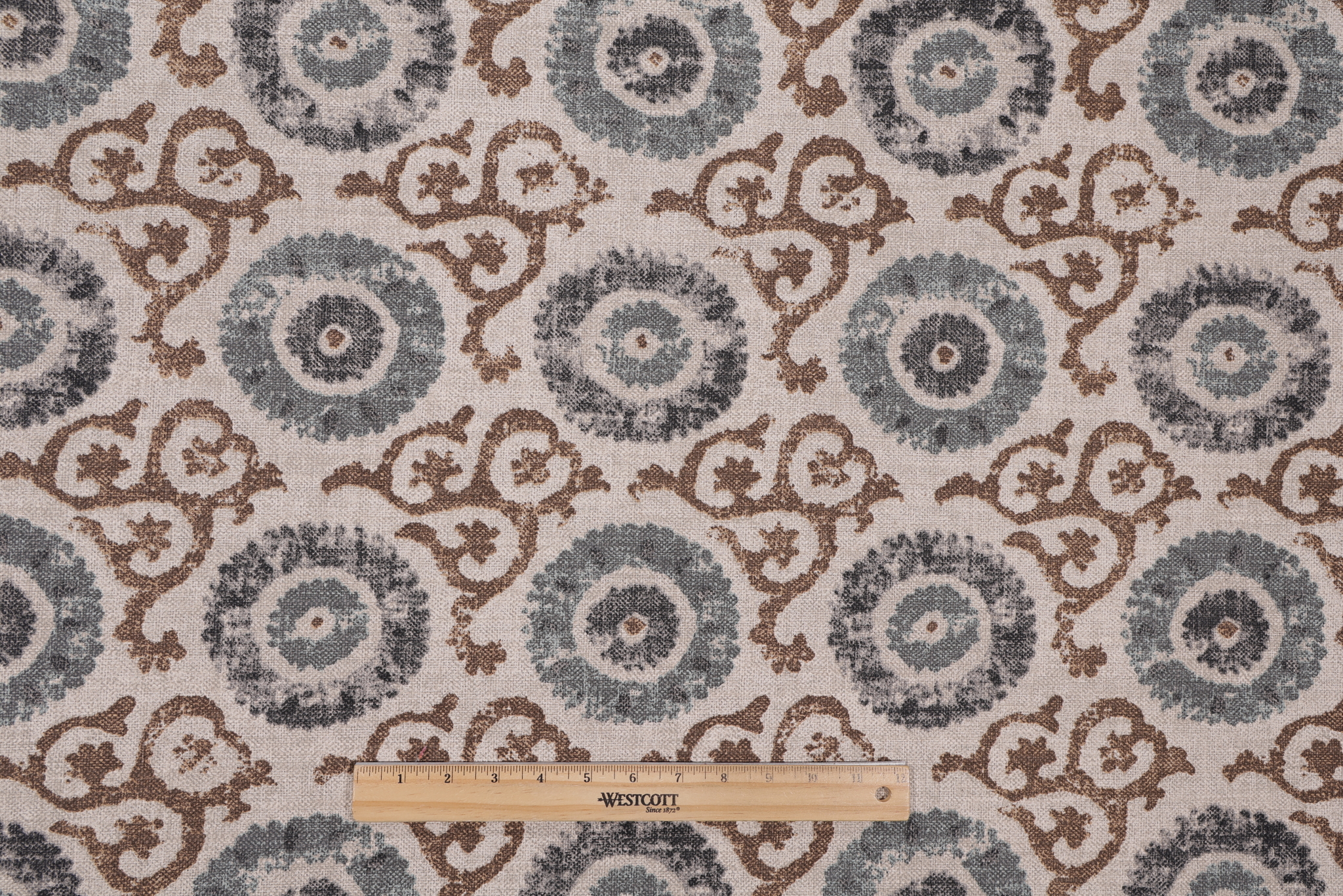 If you order a sample of PK Lifestyles Origins Printed Cotton Blend Drapery Fabric in Espresso the size of the swatch you receive will be approximately 4" x 6". This is enough fabric to verify color and texture, but may not be large enough to capture an entire pattern.