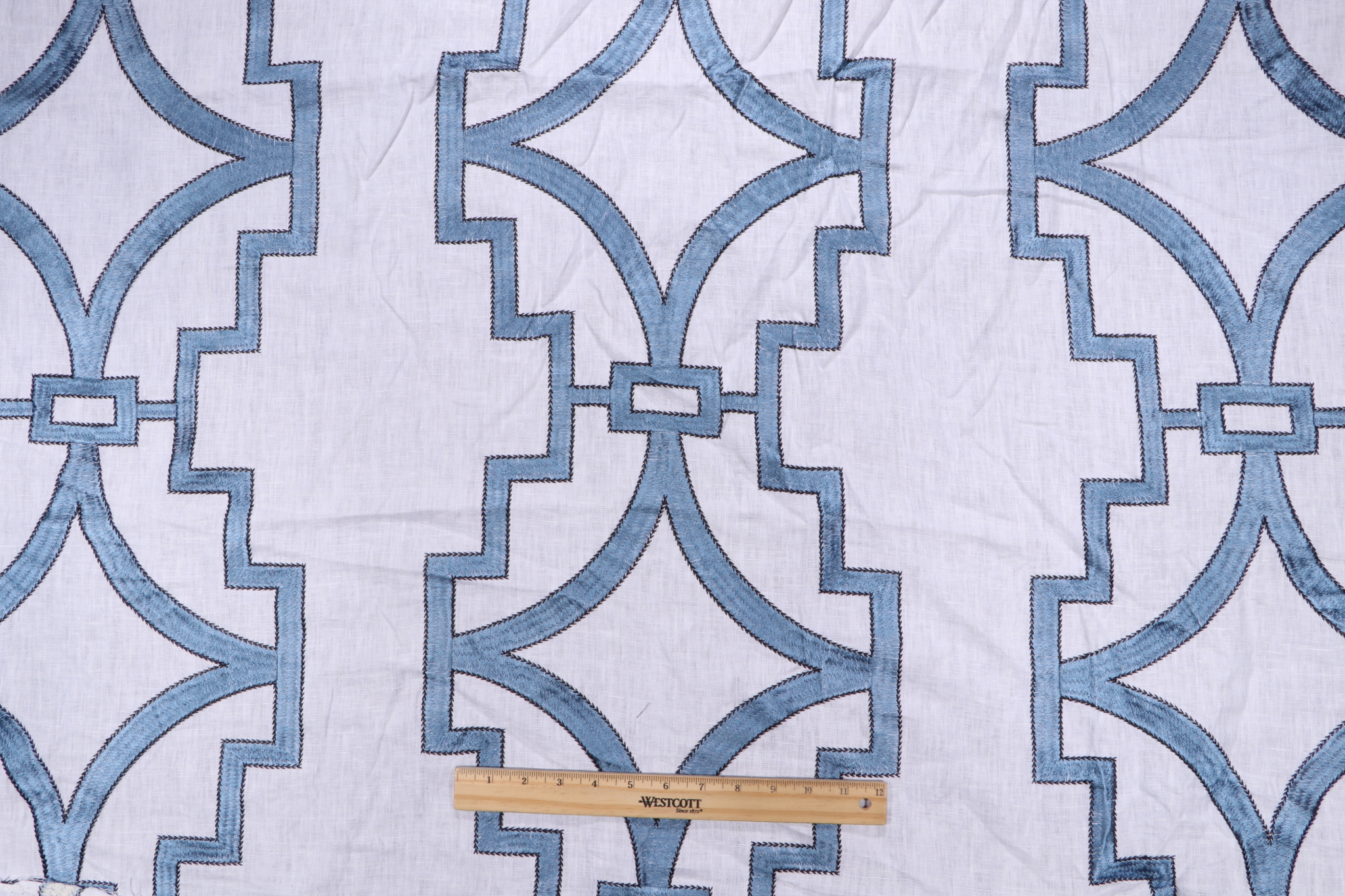 1 Yard Anna French Songyue W736144 Embroidered Drapery Fabric in Blue for Thibaut Details