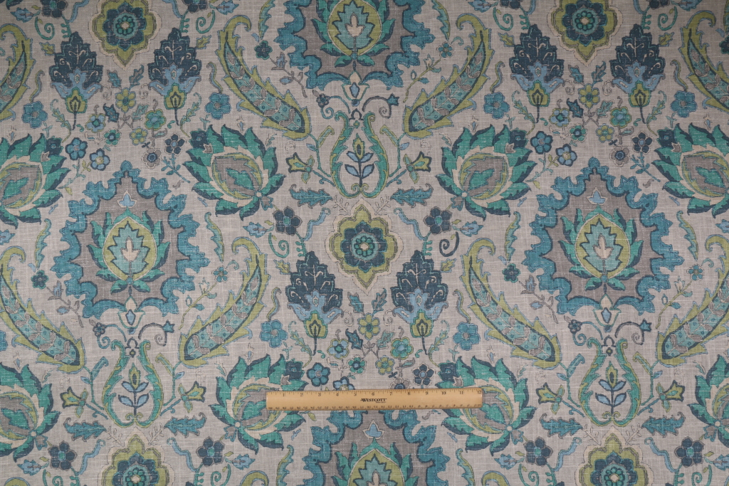 1.75 Yards Covington Bursa Printed Linen Blend Drapery Fabric in Aquamarine 521 Details