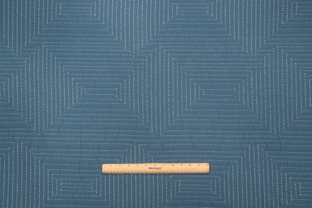 Ellen Degeneres Pollenca Matelasse Decorator Fabric in Lapis. This high-end woven decorator fabric is suited for multiple project applications. The weight is excellent for drapery projects, decorative pillows, coverlets, shams and light duty upholstery projects.
