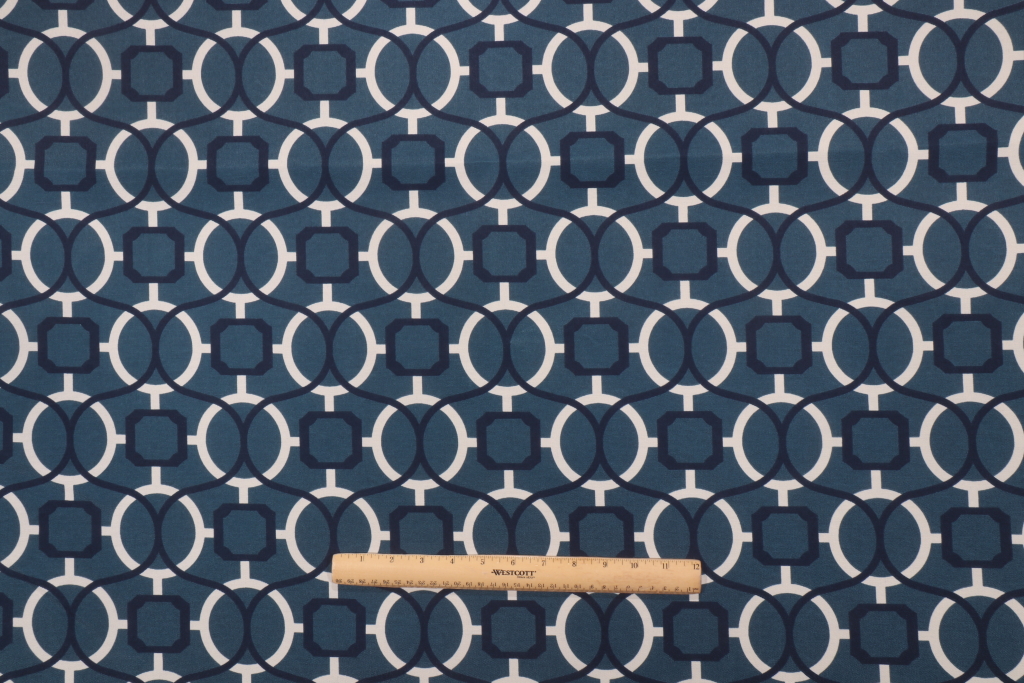 Bryant Helix Printed Polyester Outdoor Fabric in Prism Blue. This printed indoor/outdoor fabric is perfect for any project where the fabric will be exposed to the weather. Uses include cushions, tablecloths, upholstery projects, decorative pillows and craft projects. This fabric has a slightly stiff feel but is easy to work with.