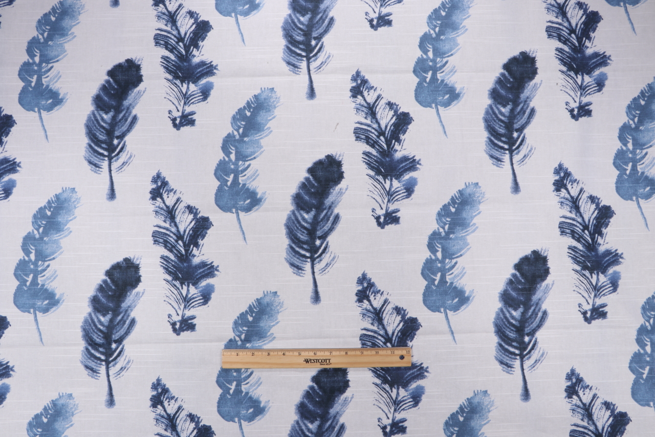 Genevieve Gorder Feather Fall Printed Cotton Drapery Fabric in Indigo is a remnant, which is sold as a whole piece.