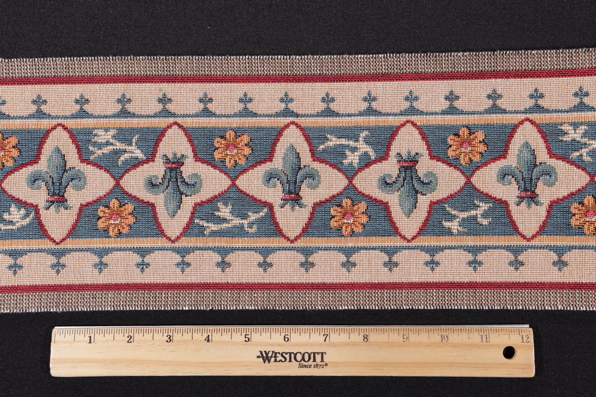 1 Yard Scalamandre Fleur De Lys Border 6'' Tapestry Border Fabric in Blue Details