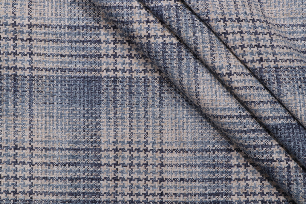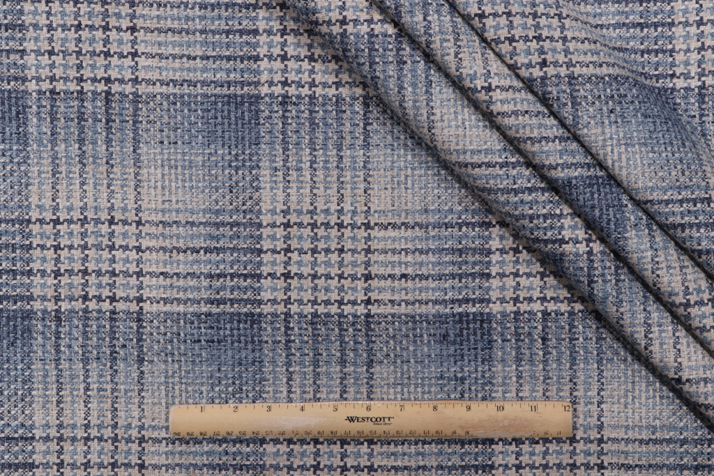 1 Yards P Kaufmann Checked Woven Upholstery Fabric in Marina Details