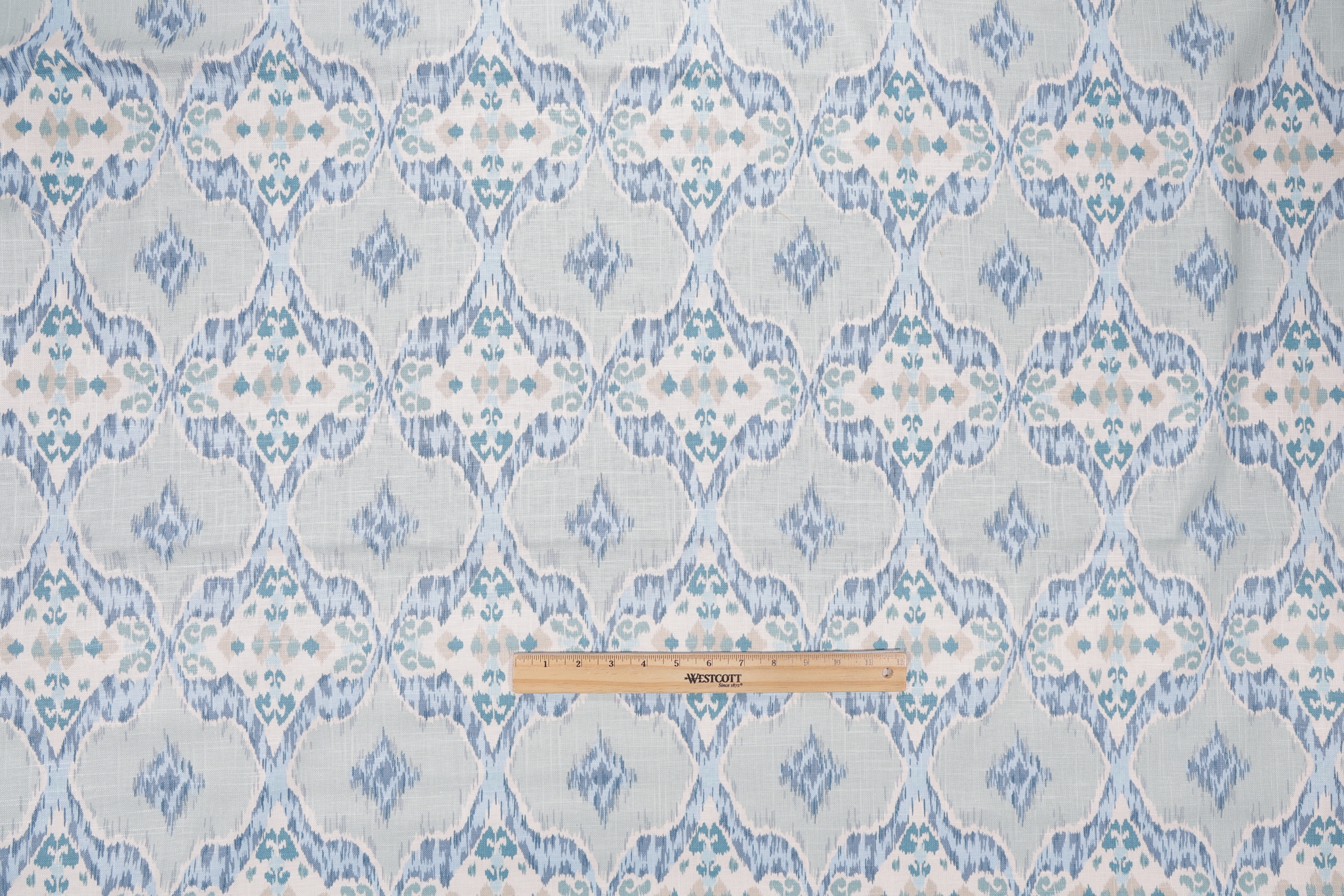 Isabelle De Borchgrave Rivulet Printed Drapery Fabric in Glacier for Fabricut is a remnant. Fabric remnants refer to leftover pieces of fabric from production runs at manufacturing sites or pieces that remain from by the yard stock. The lengths of these remnants can vary from a few inches to several yards and are typically sold at a reduced price, since they represent remaining inventory.