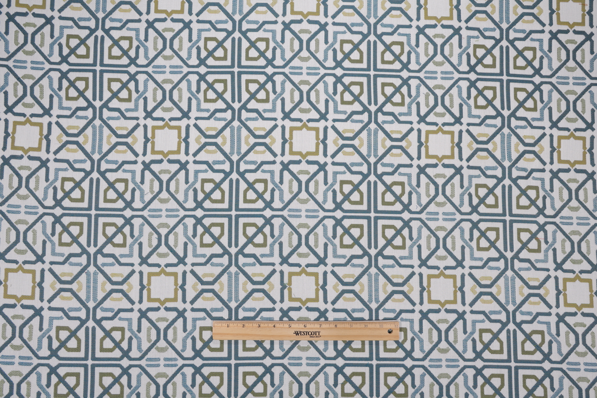If you order a sample of Sunbrella Taza 145278-0002 Woven Solution Dyed Acrylic Outdoor Fabric in Lagoon the size of the swatch you receive will be approximately 4" x 6". This is enough fabric to verify color and texture, but may not be large enough to capture an entire pattern.