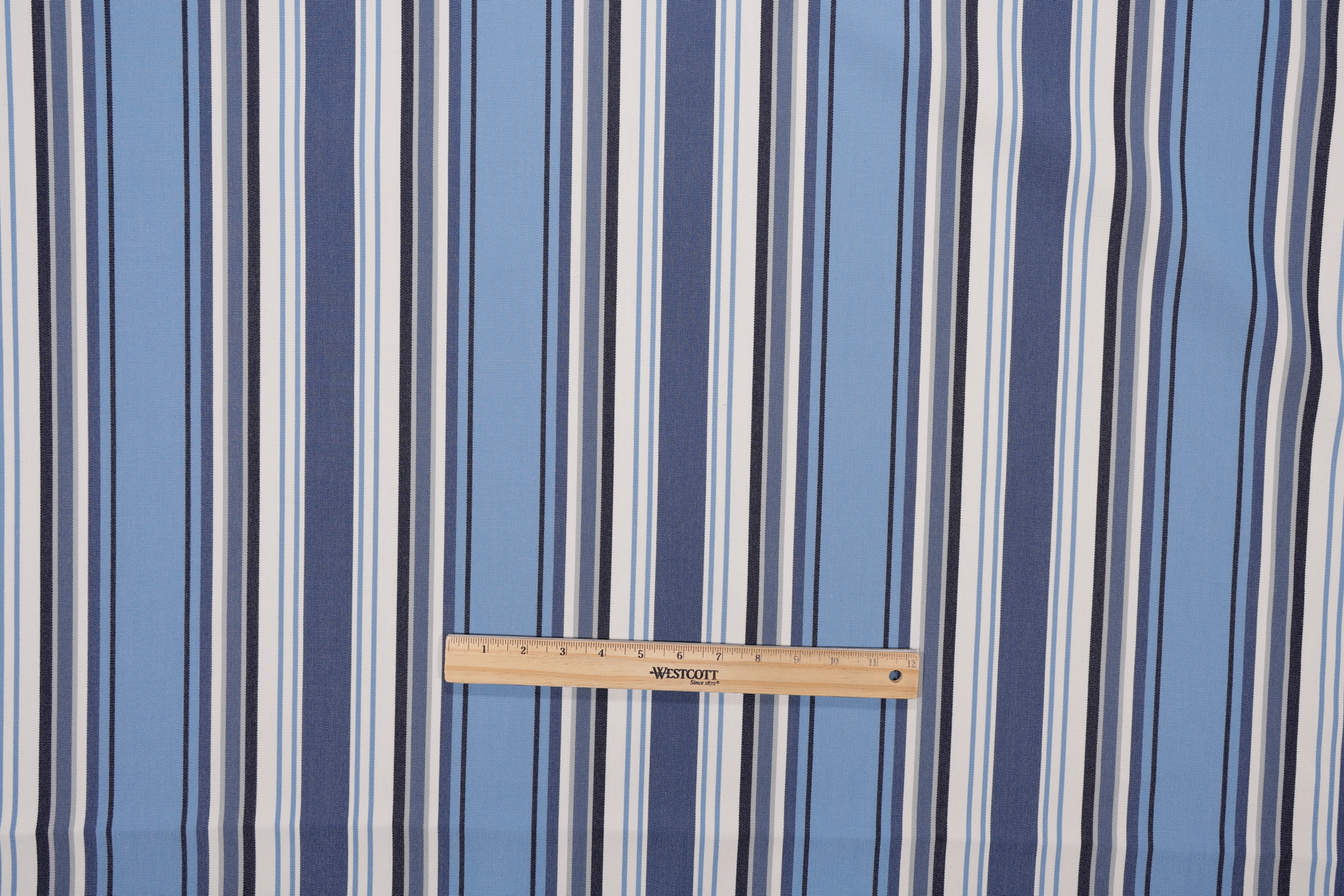 If you order a sample of Outdura Tradewinds Woven Solution Dyed Acrylic Outdoor Fabric in Nautical the size of the swatch you receive will be approximately 4" x 6". This is enough fabric to verify color and texture, but may not be large enough to capture an entire pattern.