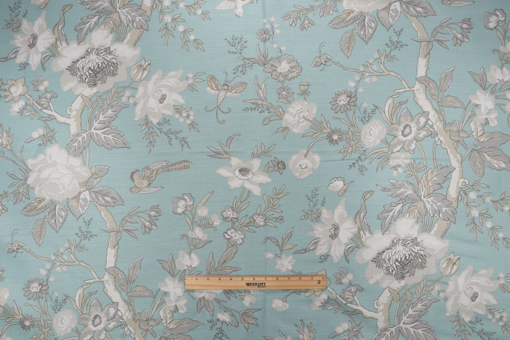 Please allow 2-3 business days for your Thibaut Nemour F936130 Printed Linen Blend Drapery Fabric in Aqua sample to ship via USPS Priority mail.