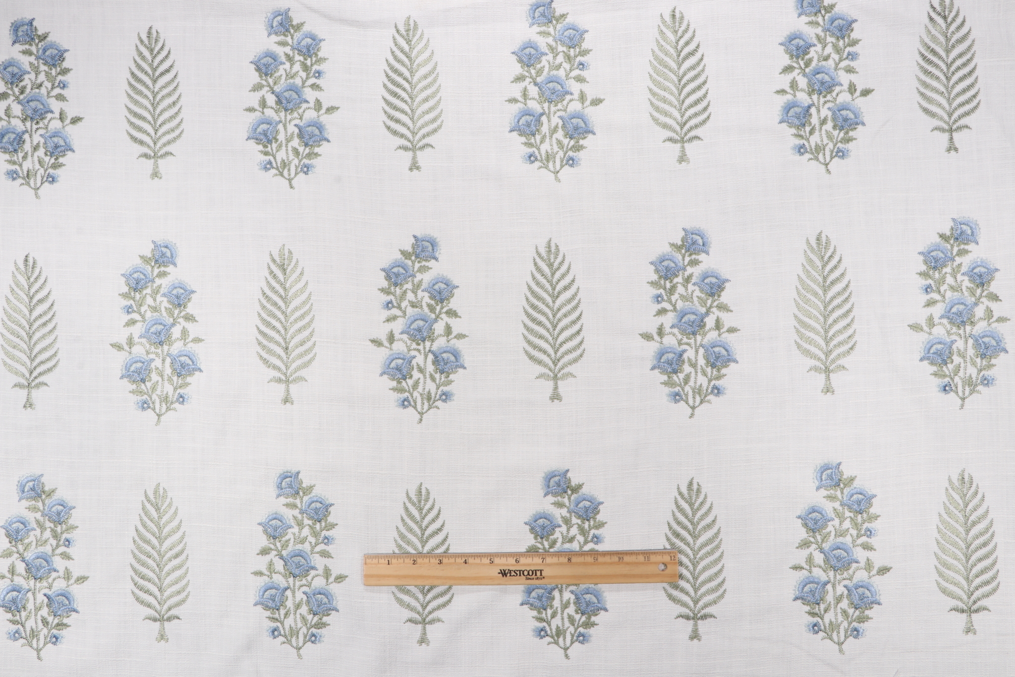If you order a sample of P Kaufmann Kashvi Embroidered Drapery Fabric in Oasis the size of the swatch you receive will be approximately 4" x 6". This is enough fabric to verify color and texture, but may not be large enough to capture an entire pattern.
