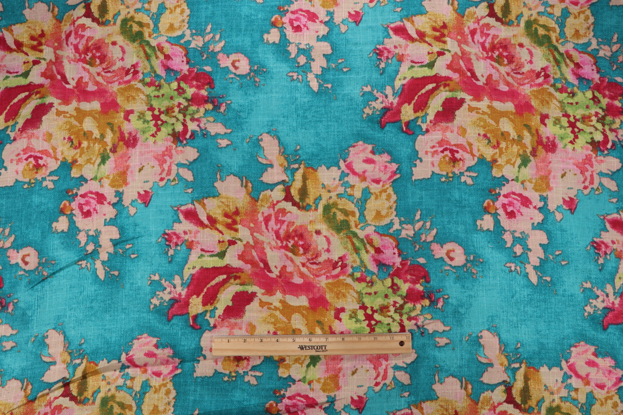 If you order a sample of Covington Venus Printed Cotton Blend Drapery Fabric in Caribbean the size of the swatch you receive will be approximately 4" x 6". This is enough fabric to verify color and texture, but may not be large enough to capture an entire pattern.