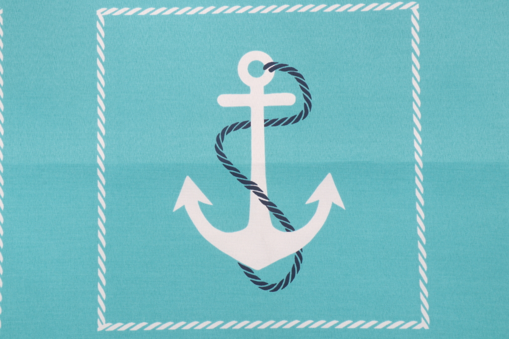 Bryant Anchor Printed Polyester Pillow Square Outdoor Fabric in Aqua Luna. This printed indoor/outdoor fabric is perfect for any project where the fabric will be exposed to the weather. Uses include cushions, tablecloths, upholstery projects, decorative pillows and craft projects. This fabric has a slightly stiff feel but is easy to work with.
