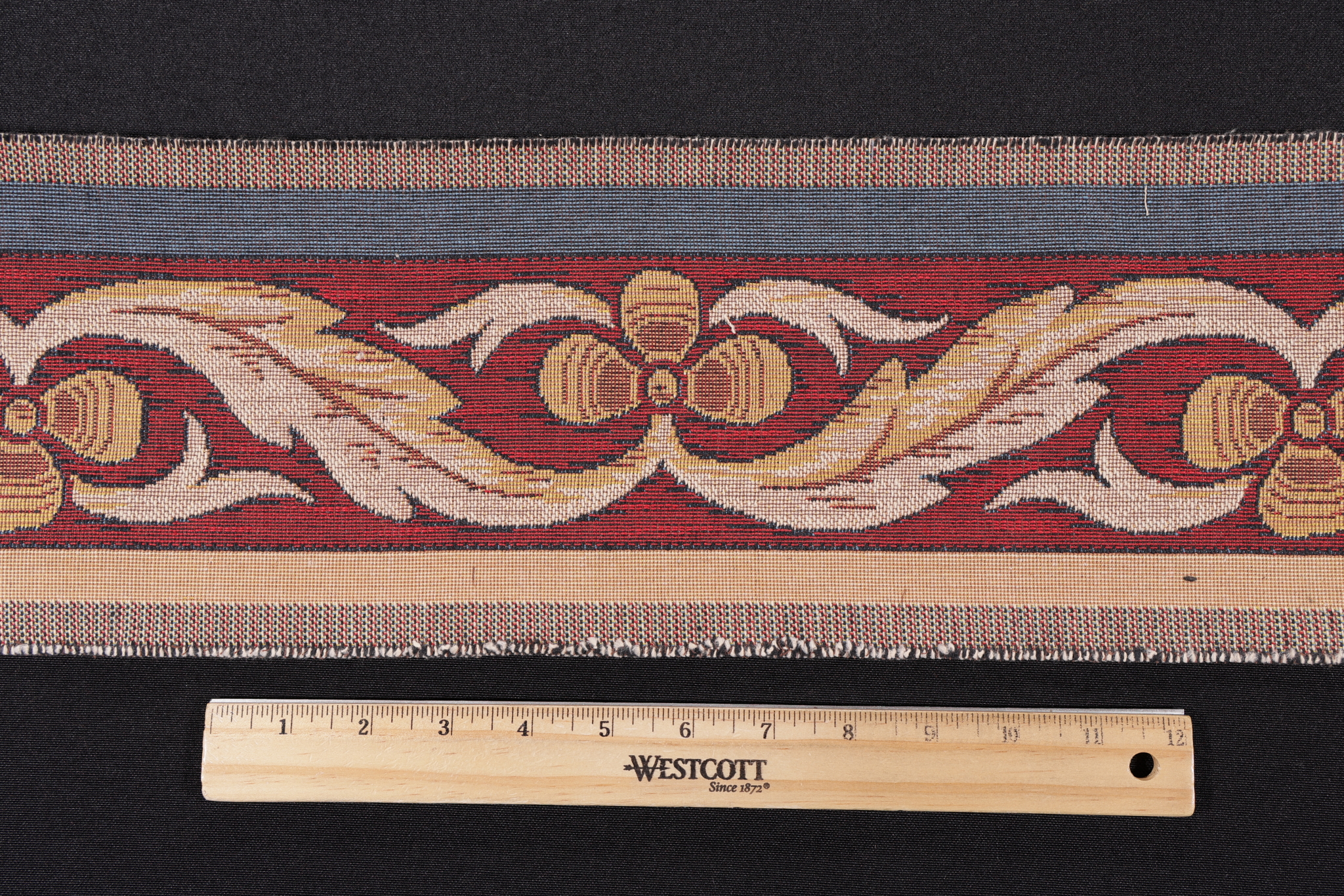 - Additional Notes: This material is a 6 inch wide border meant to accent upholstery projects.