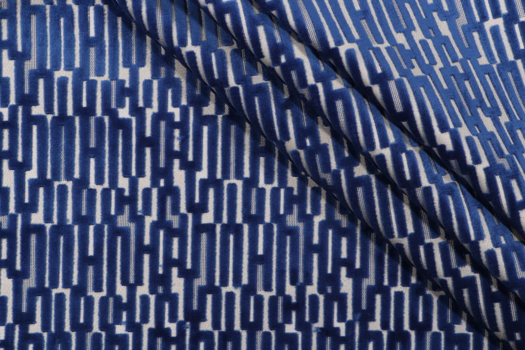 Geometric Velvet Upholstery Fabric in Blue Details