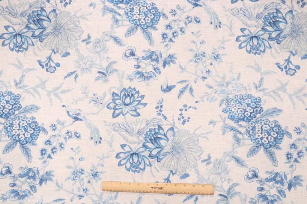 Waverly Lucchese Printed Linen Blend Drapery Fabric in Cielo. This printed fabric is perfect for window treatments, decorative pillows, handbags, light duty upholstery applications and almost any craft project. This fabric has a soft workable feel yet is stable and durable.