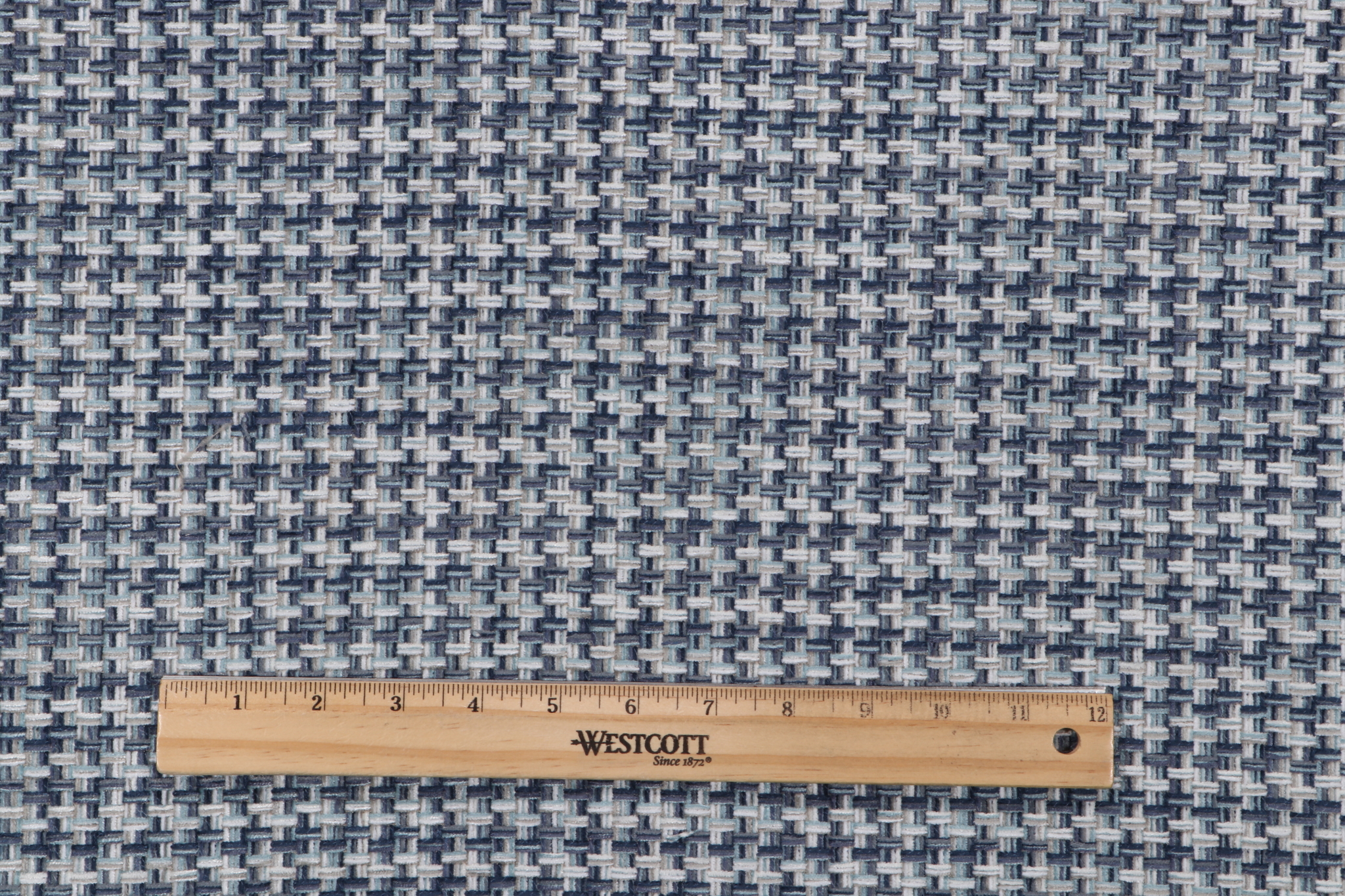 If you order a sample of Waverly Touro Woven Chenille Upholstery Fabric in Cielo the size of the swatch you receive will be approximately 4" x 6". This is enough fabric to verify color and texture, but may not be large enough to capture an entire pattern.