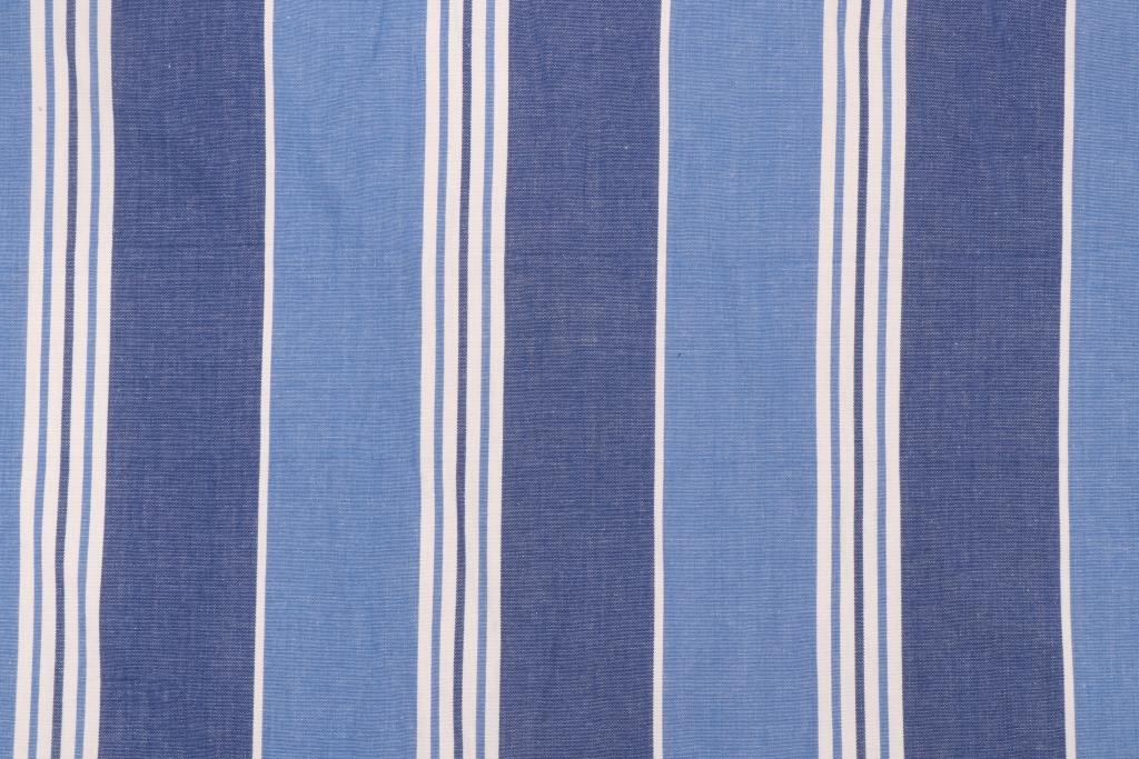 Onyx Age Woven Stripe Woven Cotton Decorator Fabric in Blue/White is a remnant. Fabric remnants refer to leftover pieces of fabric from production runs at manufacturing sites or pieces that remain from by the yard stock. The lengths of these remnants can vary from a few inches to several yards and are typically sold at a reduced price, since they represent remaining inventory.