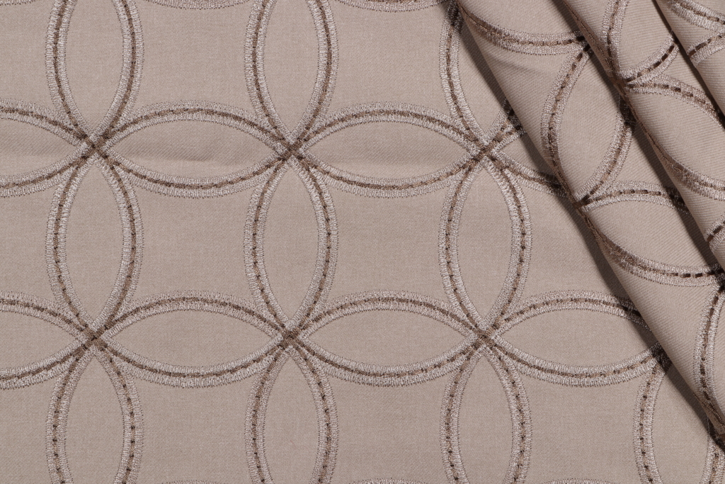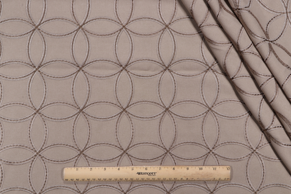 1.25 Yards Circle Link Embroidered Drapery Fabric in Brownstone Details