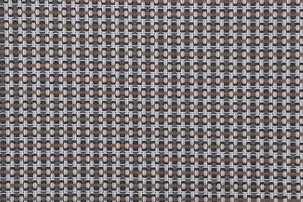 Phifertex Woven Vinyl Mesh Sling Chair Outdoor Fabric in Brown/Grey is a remnant, which is sold as a whole piece.