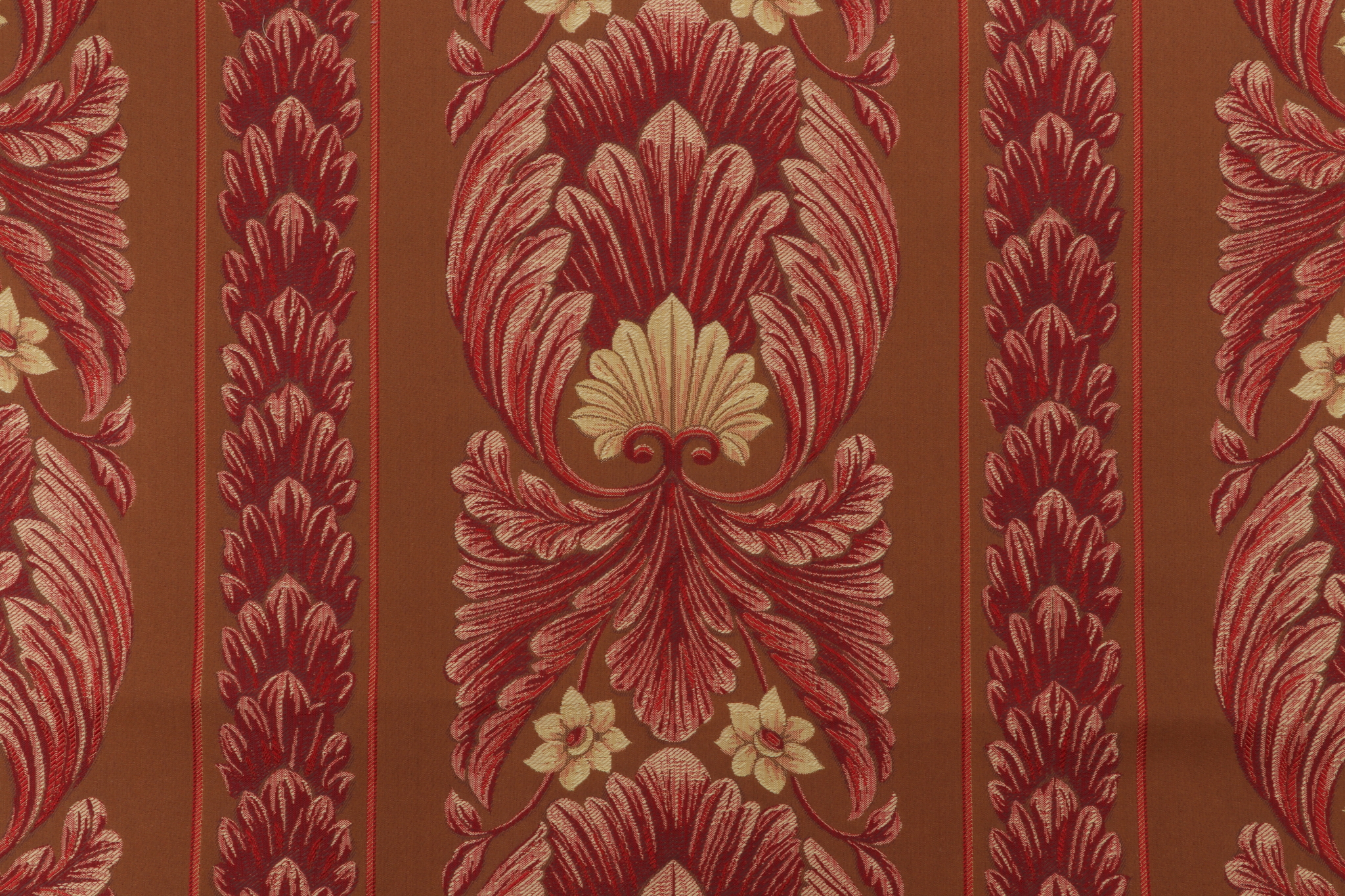 Grey Watkins Vincent Tapestry Upholstery Fabric in Tan/Red for Scalamandre is a remnant. Fabric remnants refer to leftover pieces of fabric from production runs at manufacturing sites or pieces that remain from by the yard stock. The lengths of these remnants can vary from a few inches to several yards and are typically sold at a reduced price, since they represent remaining inventory.