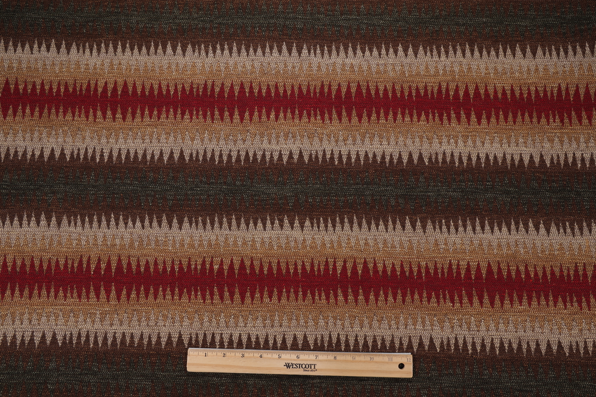If you order a sample of Indian Blanket Woven Upholstery Fabric in Multi the size of the swatch you receive will be approximately 4" x 6". This is enough fabric to verify color and texture, but may not be large enough to capture an entire pattern.