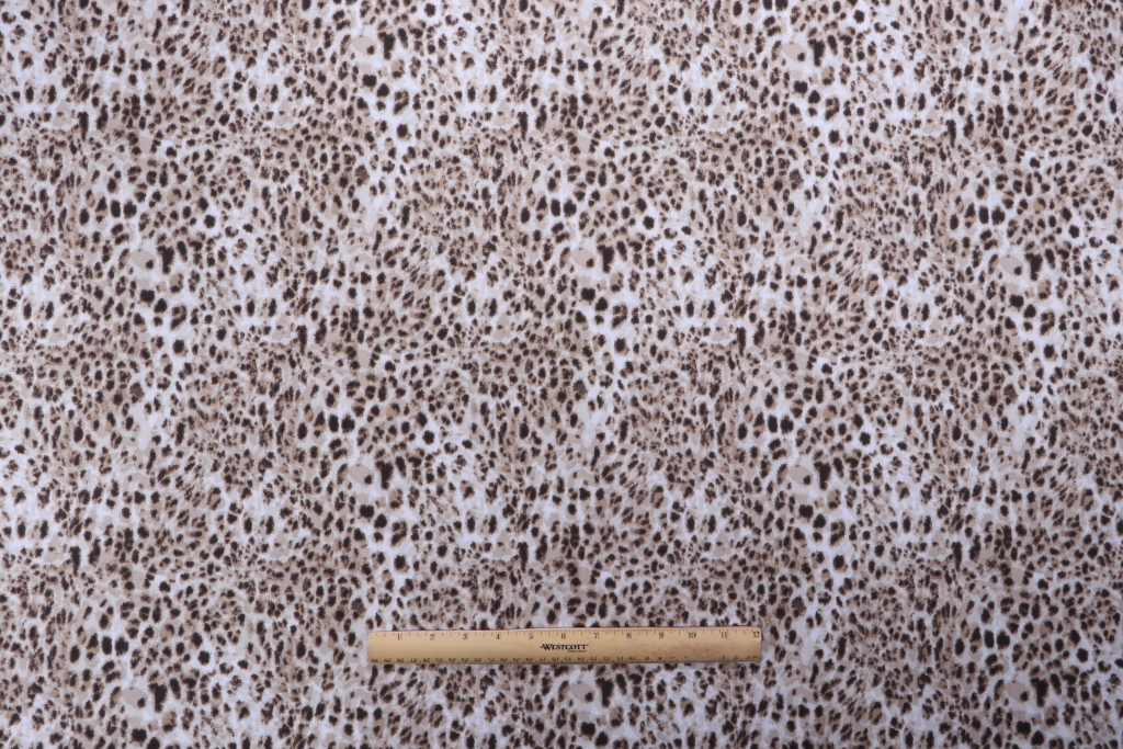 Mill Creek’s Zeffa Paramount Printed Cotton Drapery Fabric in Driftwood presents an elevated take on an animal-inspired motif, rendered in a balanced palette of warm taupe, sand, and espresso on an ivory ground. The artwork is a dense, small-scale constellation of soft-edged spots that creates a rich, continuous surface; reading as a refined texture from a distance and resolving into organic rosettes up close. Printed on a smooth cotton plain weave, the finish is matte with a natural hand that highlights the clarity of the design. The coloration is thoughtfully layered, with tonal mid-browns providing depth and darker accents adding definition without harsh contrast. The repeat is tightly integrated so seams blend visually, offering consistent coverage across larger expanses of fabric. Subtle variations in spot size and tone give the pattern dimension and a hand-rendered feel while maintaining a calm, neutral presence. The result is a versatile, contemporary print that pairs the ease of cotton with artful, nature-informed graphics and a timeless driftwood-neutral palette.