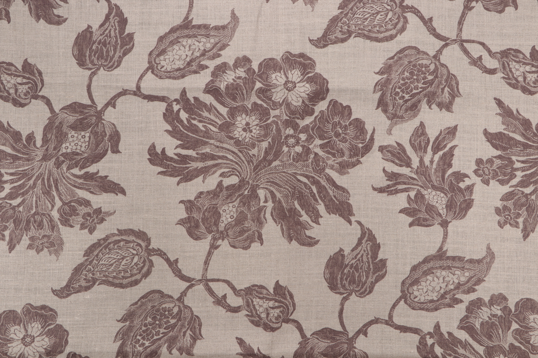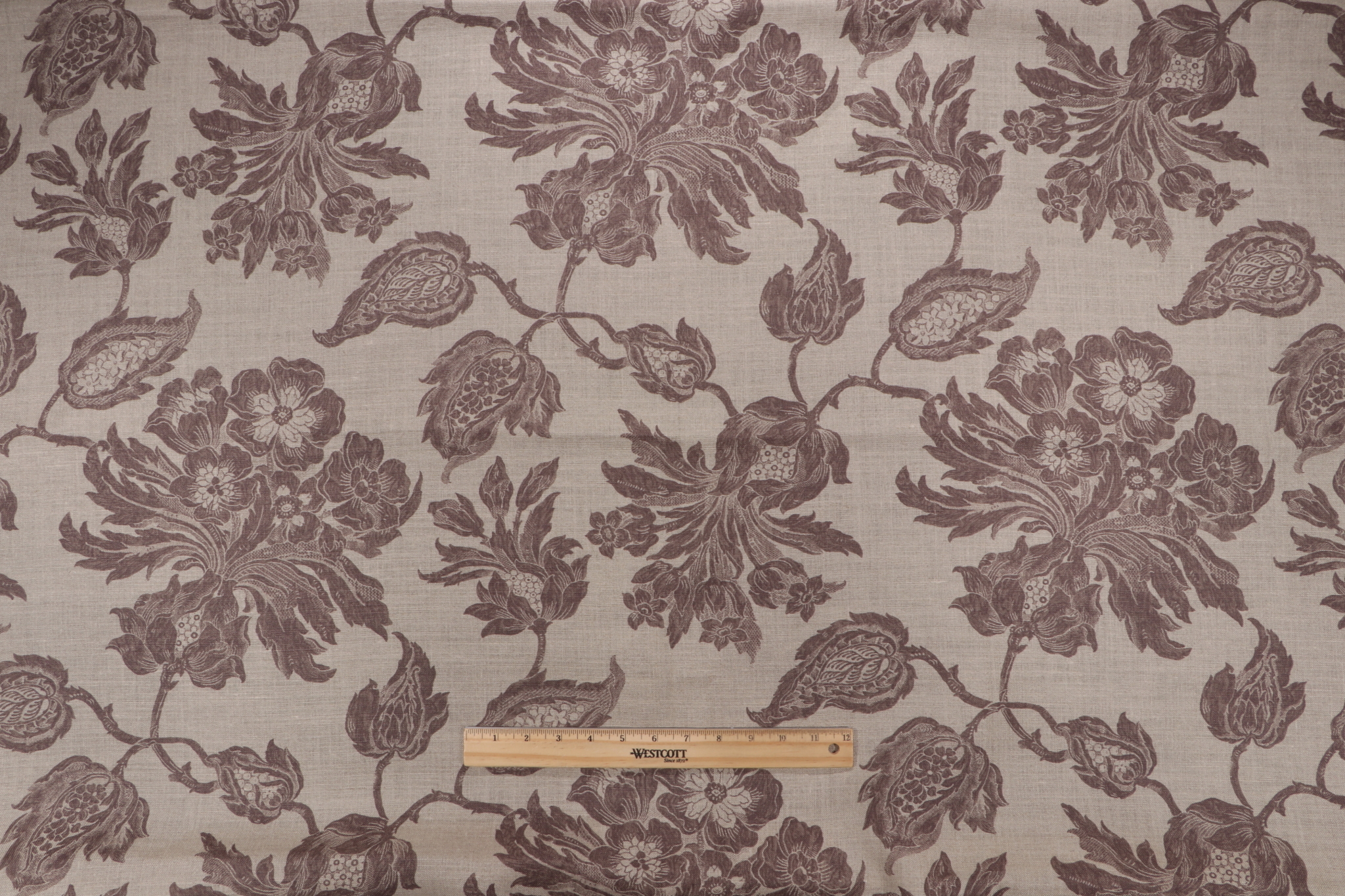 4.38 Yards Thibaut Helena F94104 Printed Linen Drapery Fabric in Brown on Natural Details
