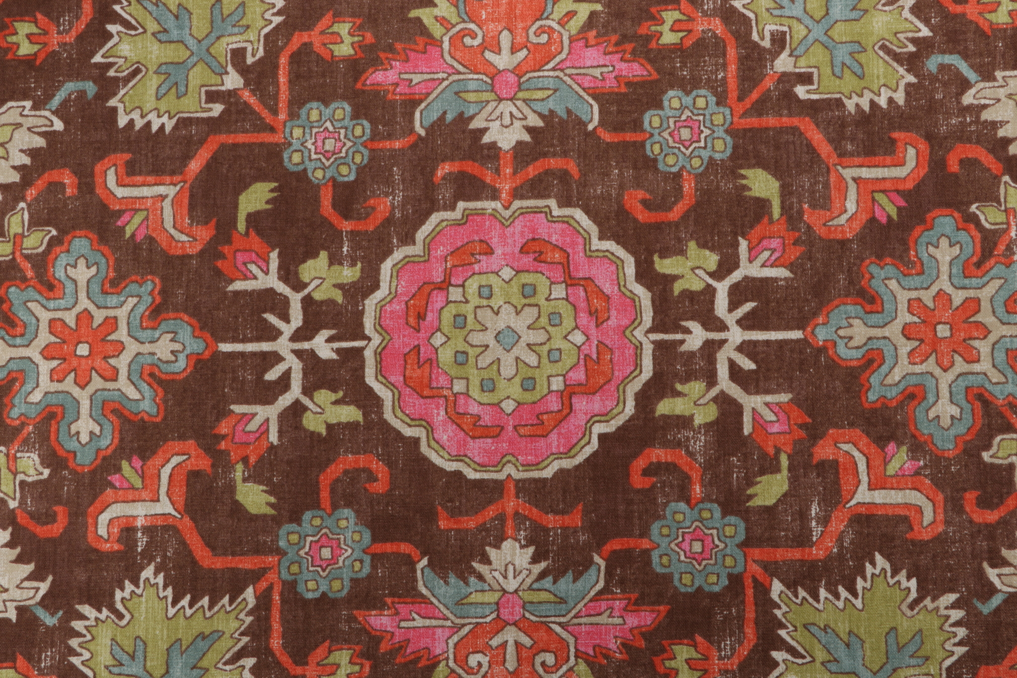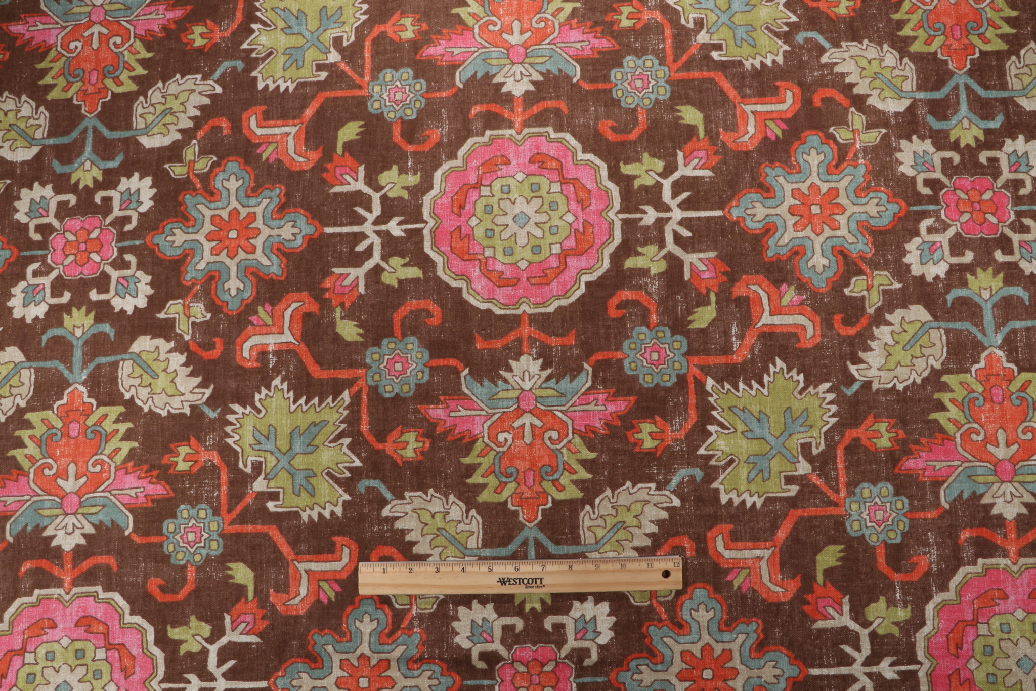 12 Yards Thibaut Mahal F964133 Printed Linen Blend Drapery Fabric in Chocolate Details