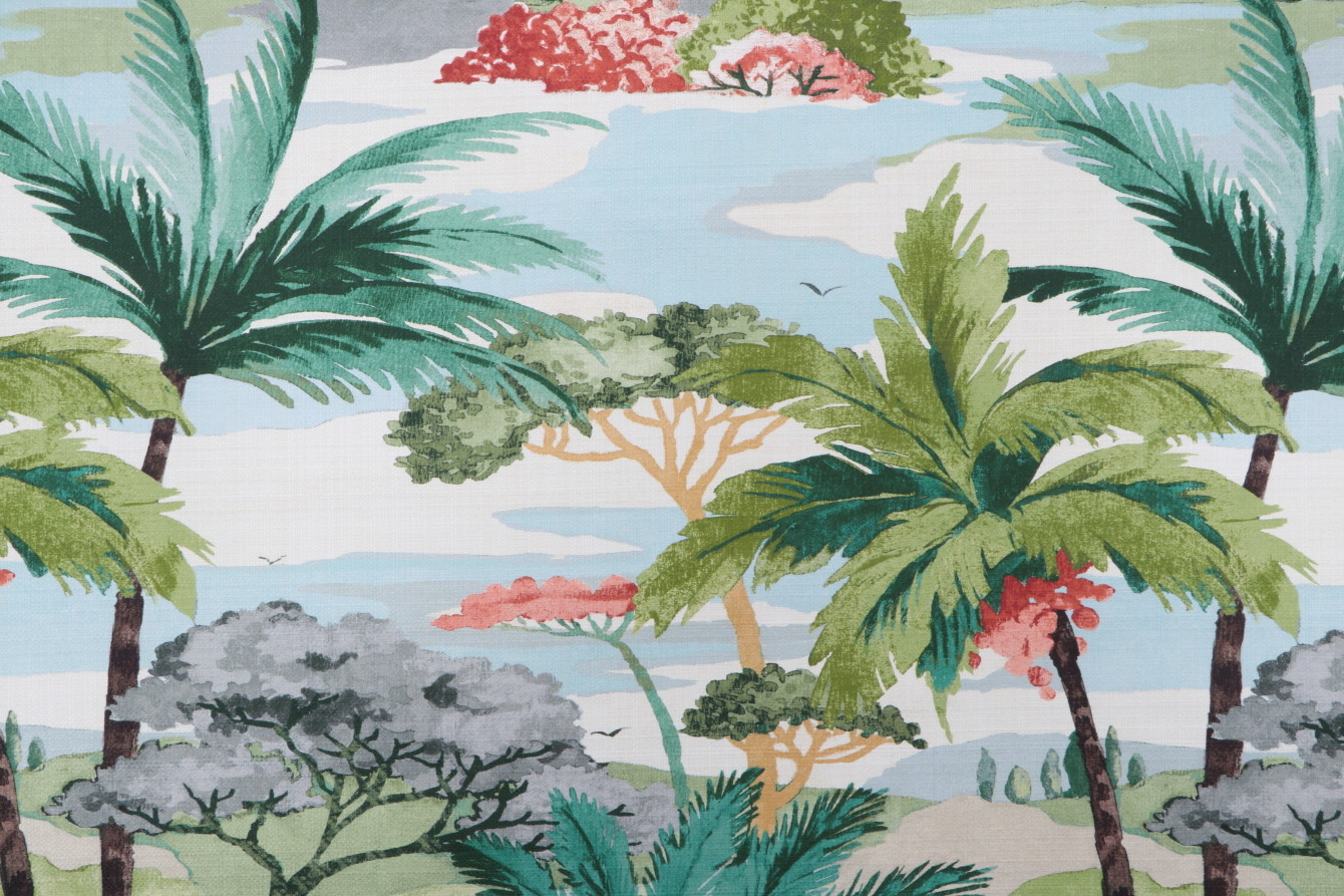 P Kaufmann Palm Aire Printed Cotton Drapery Fabric in Caribbean Blue Details