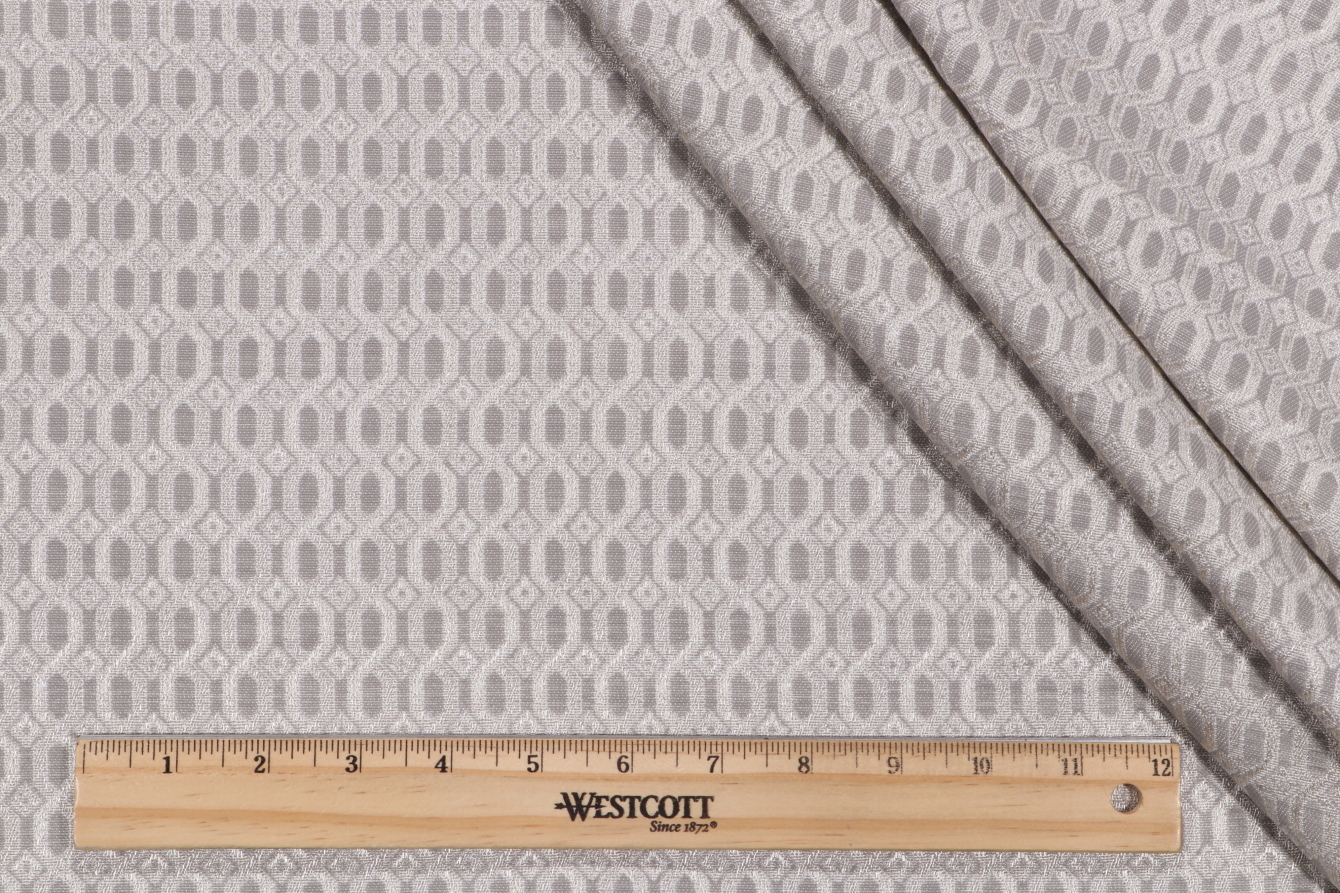 Now featuring 10 yards of Merola, a luxurious woven decorator fabric from Covington. This fabric can be used for elegant drapery, accent upholstery such as settees or headboards, or multiple coordinated home décor elements. Perfectly balanced with hues of silver, dark gray, rosy brown, gray, and dim gray, this fabric will surely enhance your application. Make a statement with Covington fabrics, crafted for elegance, durability, and timeless appeal. Note: If you are unsure about the suitability of this fabric for your specific use case please contact us prior to ordering.