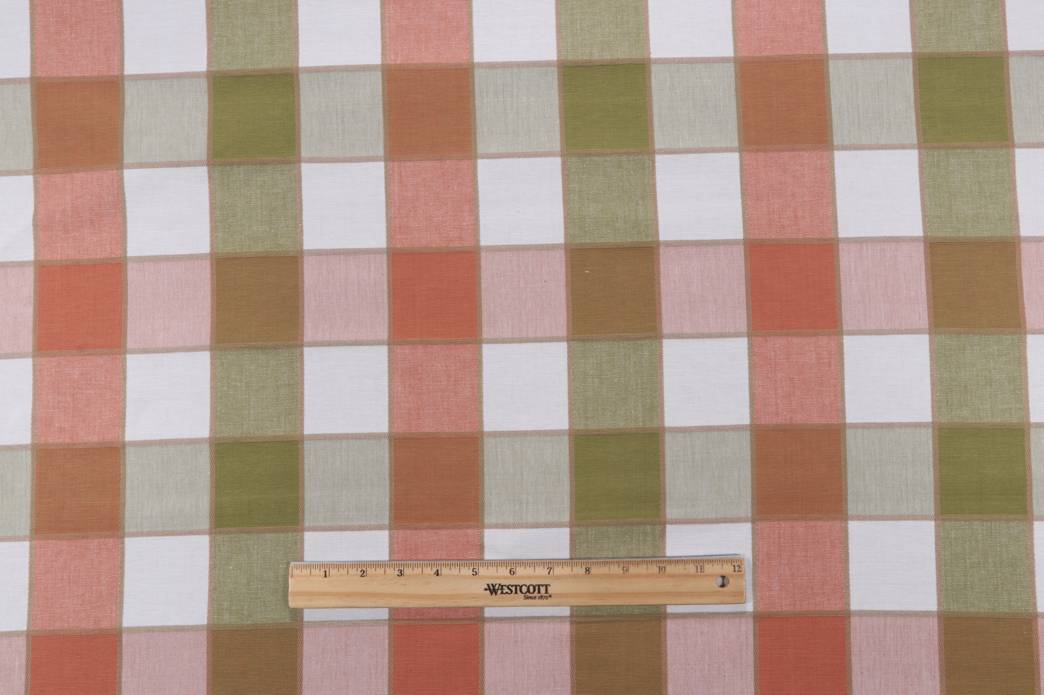 1 Yards Laura & Kiran Buffalo Check Woven Upholstery Fabric in Sage Blush Details
