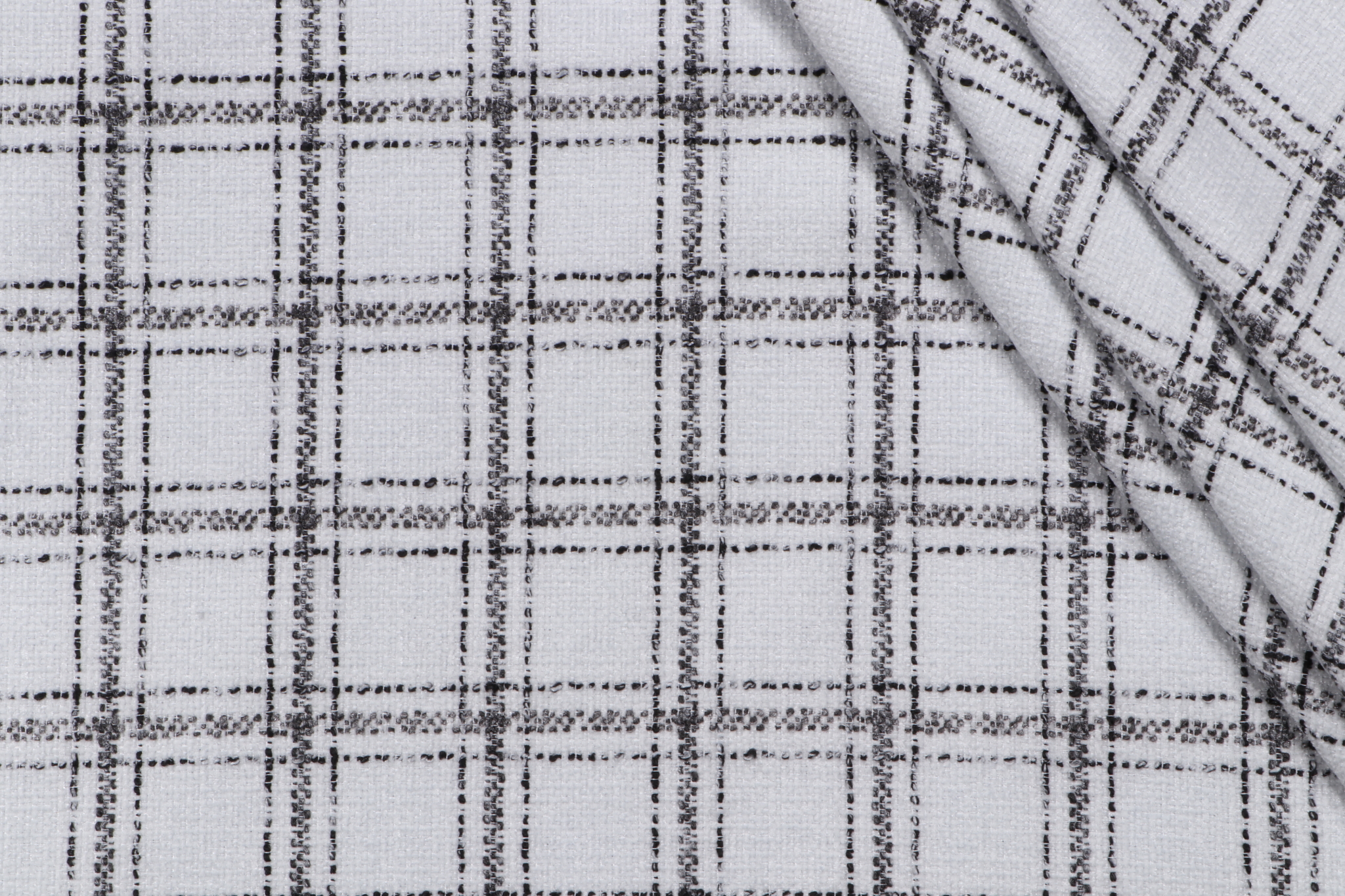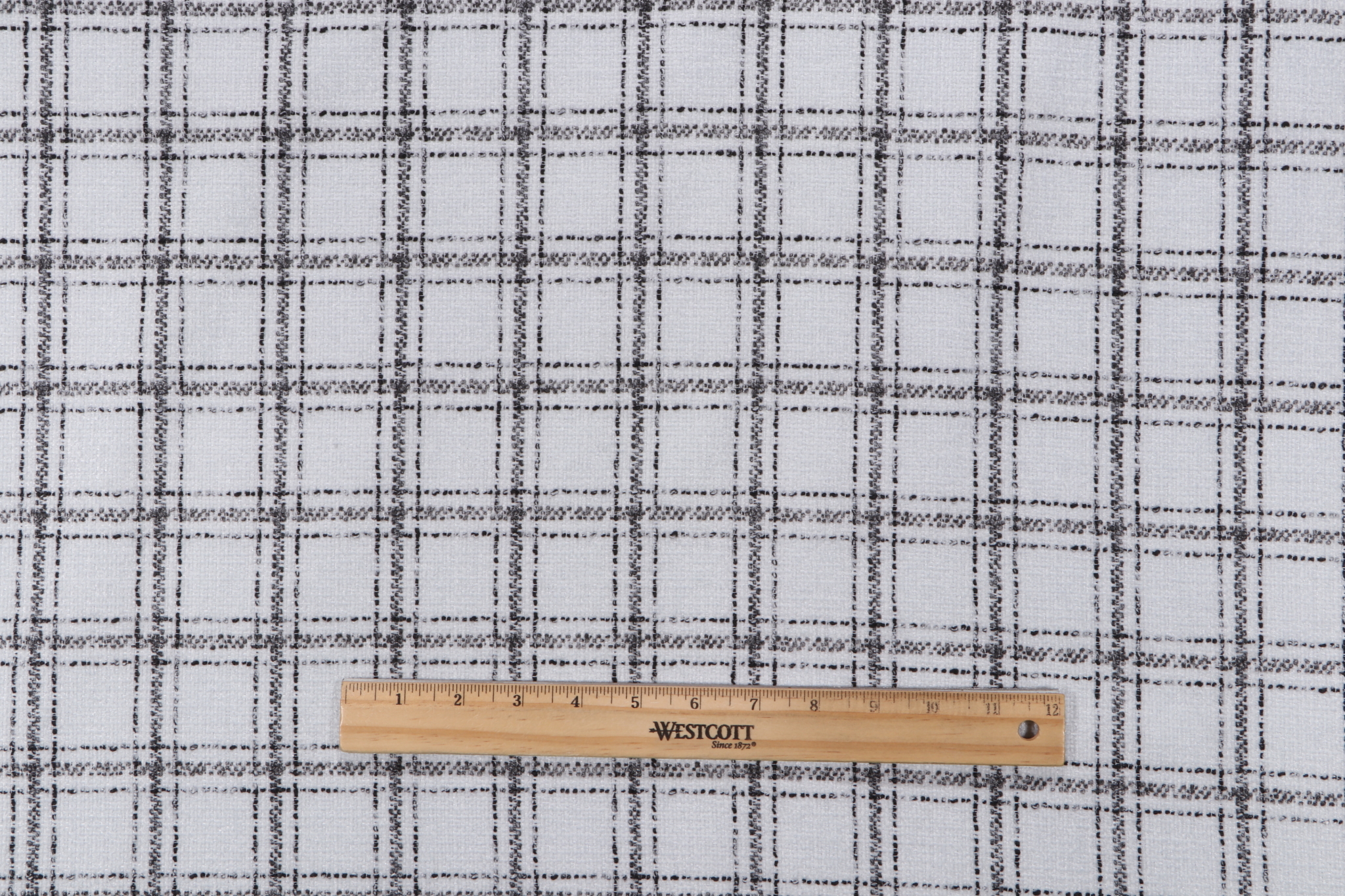 PK Lifestyles Glendale Plaid Woven Chenille Upholstery Fabric in Domino is a remnant, which is sold as a whole piece.