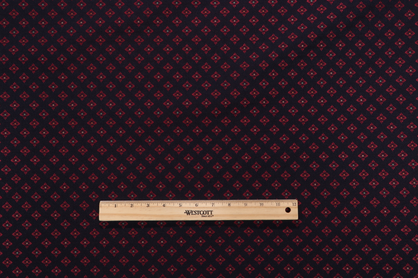 The length of this Scalamandre Stella Geometric Woven Upholstery Fabric in Red on Navy remnant is 7.88 yard(s).