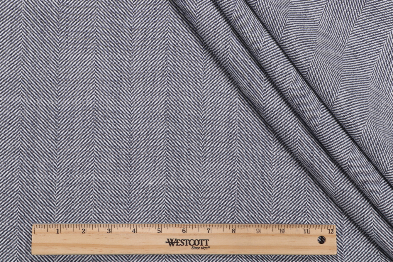 8 Yards Vance Herringbone Woven Upholstery Fabric in Denim Details