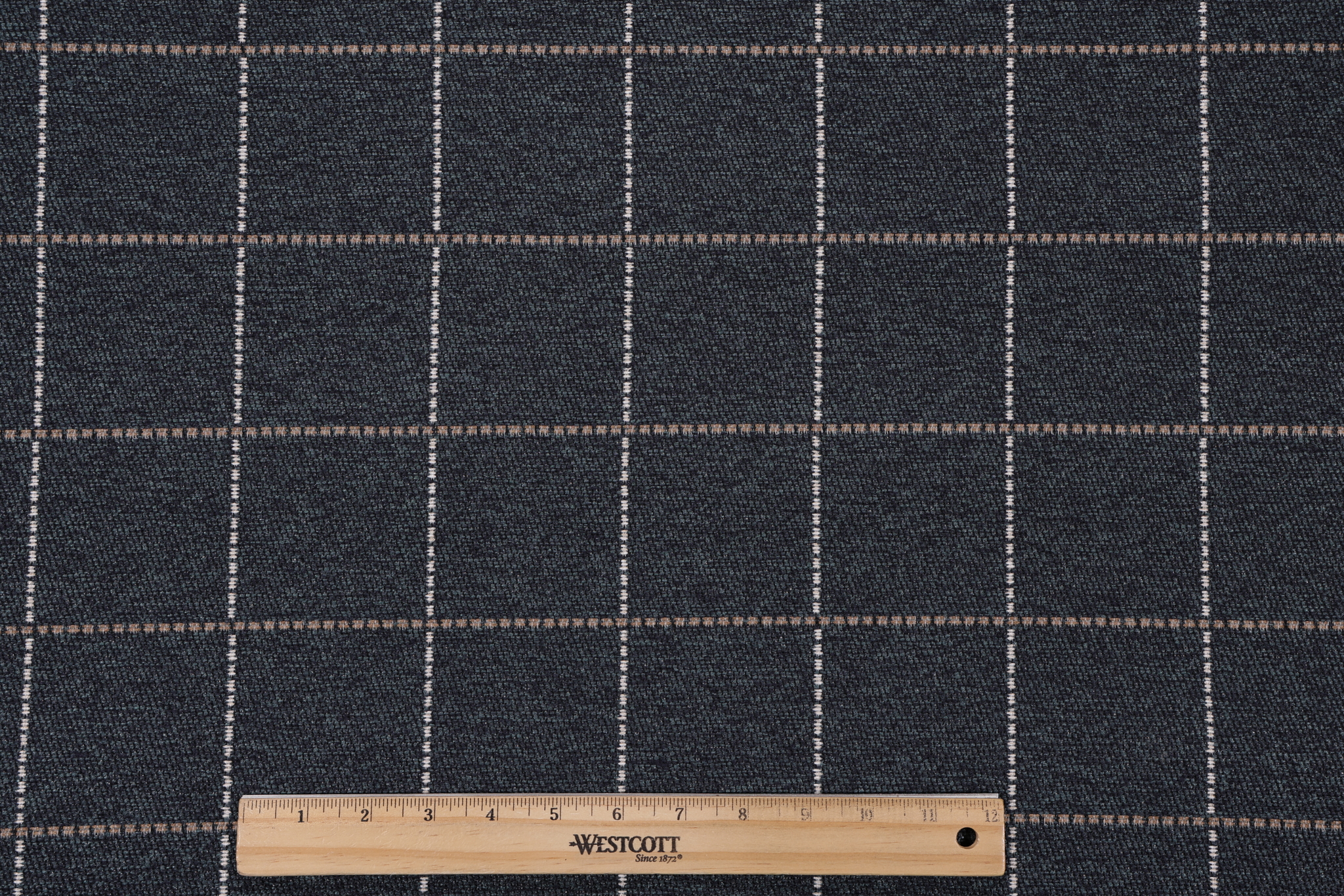 If you order a sample of Wickham Woven Upholstery Fabric in Midnight the size of the swatch you receive will be approximately 4" x 6". This is enough fabric to verify color and texture, but may not be large enough to capture an entire pattern.
