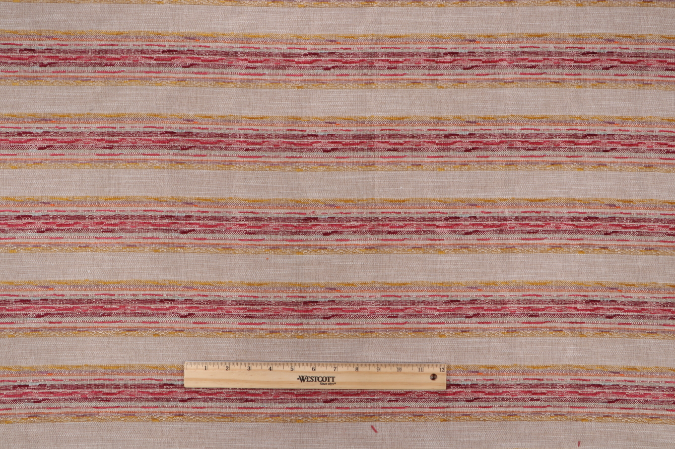 1.5 Yards Sacramento Woven Chenille Upholstery Fabric in Berry Stripe Details