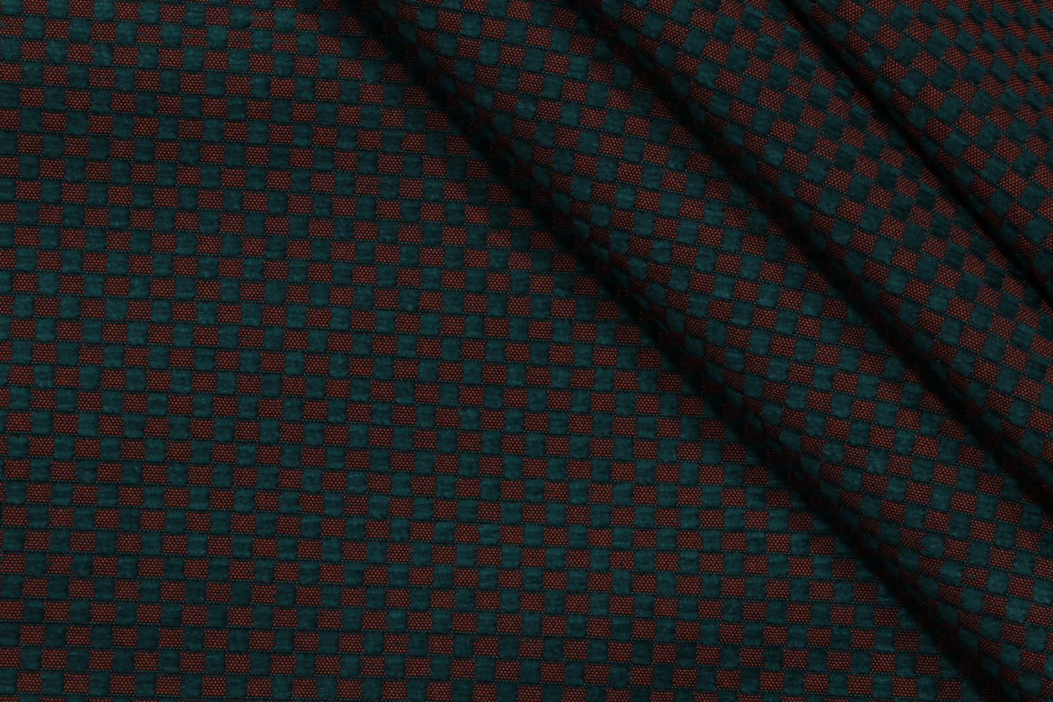 Scalamandre Lumina Check Woven Chenille Upholstery Fabric in Green/Copper is a remnant, which is sold as a whole piece.