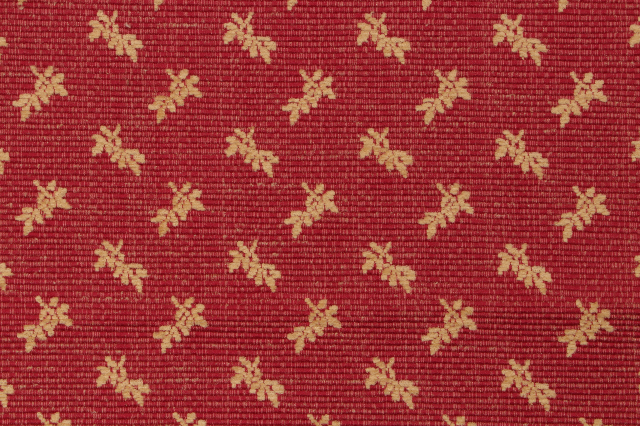 Scalamandre La Perrone Leaf Chenille Upholstery Fabric in Red is a remnant. Fabric remnants refer to leftover pieces of fabric from production runs at manufacturing sites or pieces that remain from by the yard stock. The lengths of these remnants can vary from a few inches to several yards and are typically sold at a reduced price, since they represent remaining inventory.