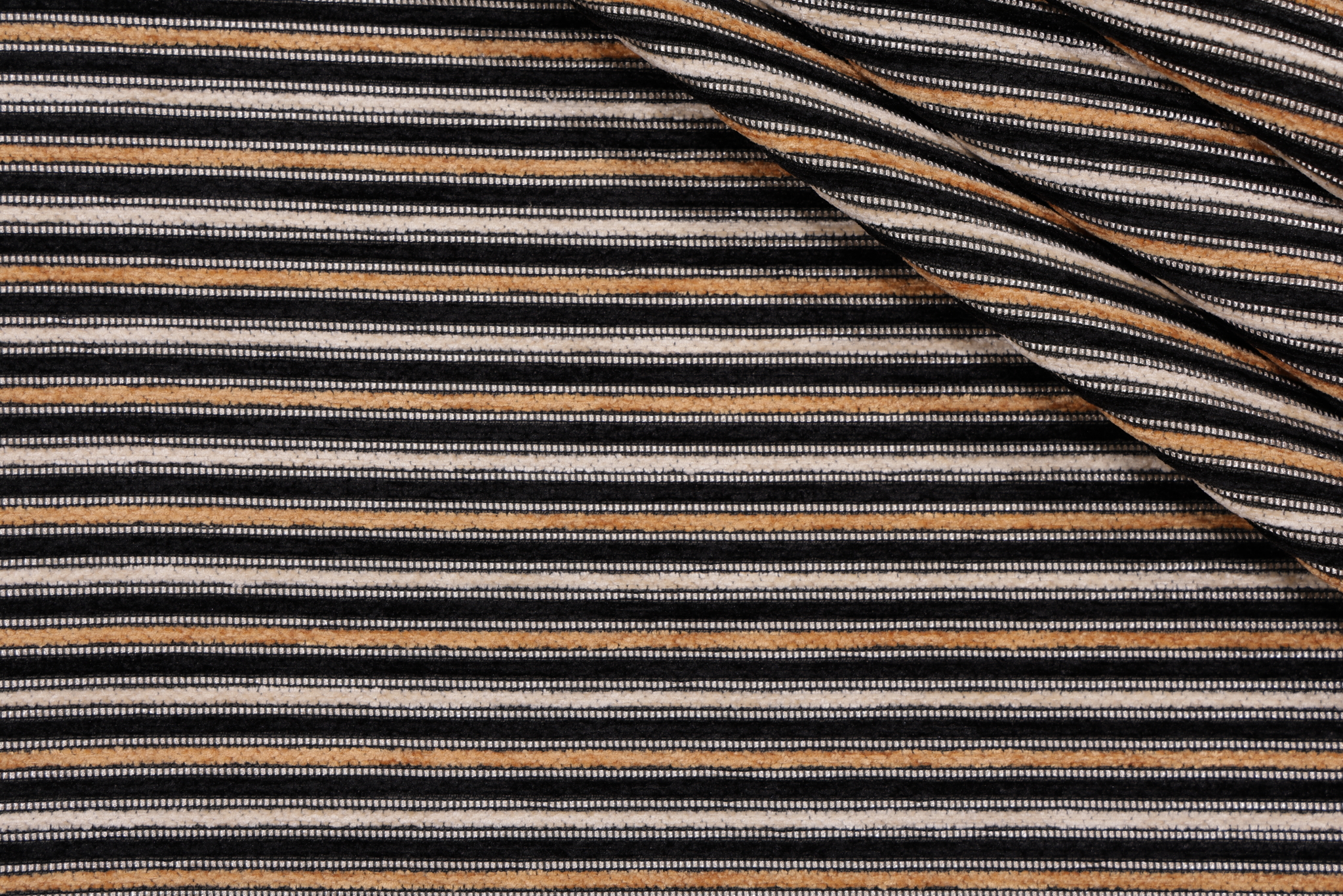 Scalamandre Woven Chenille Upholstery Fabric in Black/Gold is a remnant. Fabric remnants refer to leftover pieces of fabric from production runs at manufacturing sites or pieces that remain from by the yard stock. The lengths of these remnants can vary from a few inches to several yards and are typically sold at a reduced price, since they represent remaining inventory.